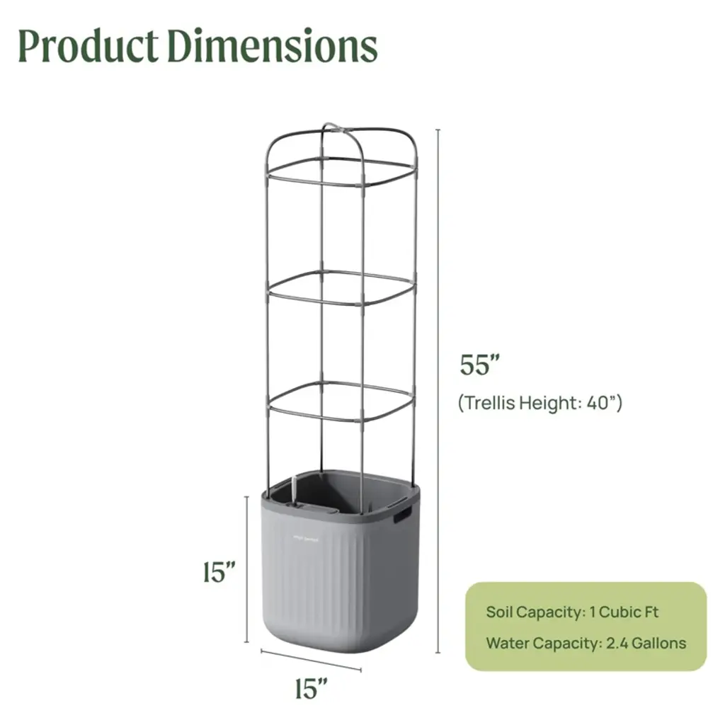 Vego Garden Self-watering Rolling Tomato Rectangular Indoor Outdoor Planter Pot With Trellis Fog Gray 15"x15"x55"