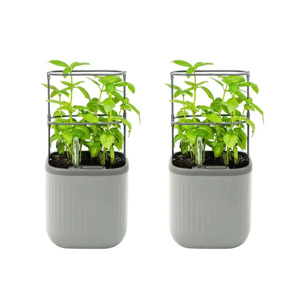 Vego Garden Twin Pack Self-watering Mini Rectangular Indoor Planter Pots Includes 2 Planter Pots And Trellis Fog Gray 7"x7"x14"