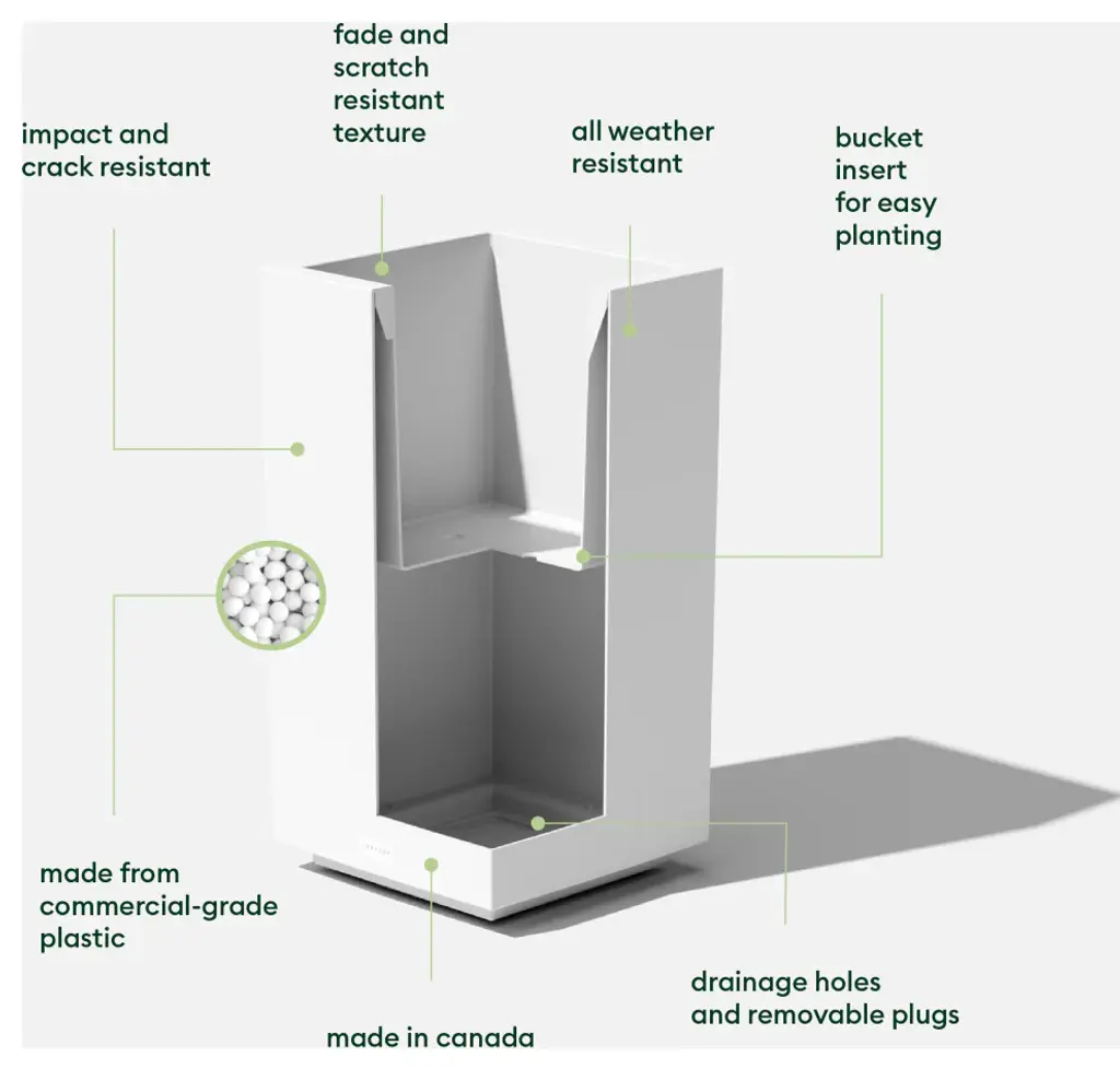 Standing tall and proud to feature its clean, sleek lines, the Veradek Pedestal Planter adds character to outdoor spaces like the front porch, patio or backyard. Easily switch out tall plants, flowers or shrubs and prevent overwatering with the removable insert bucket and pre-drilled drainage holes. This sturdy yet lightweight planter is proudly crafted in Canada from high-grade recycled plastic, making it resistant to cracks, fading and UV and allowing it to withstand extreme temperatures ranging from -20 to +120 degrees. With the ideal balance of design, structure and purpose, the Pedestal pairs perfectly with any arrangement to make a grand statement.