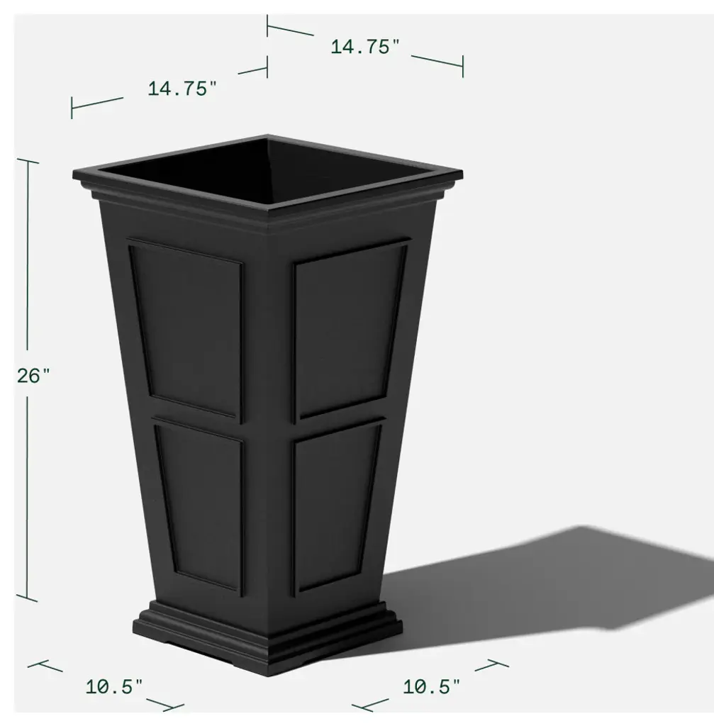 Veradek Brixton Tall Planter, Black, 26 Inch, 2 Pack