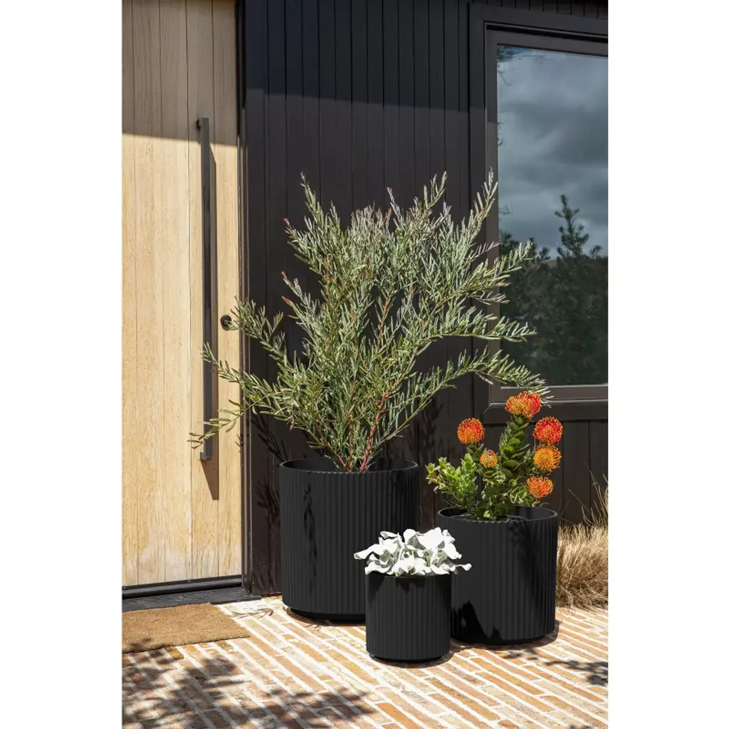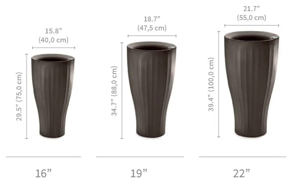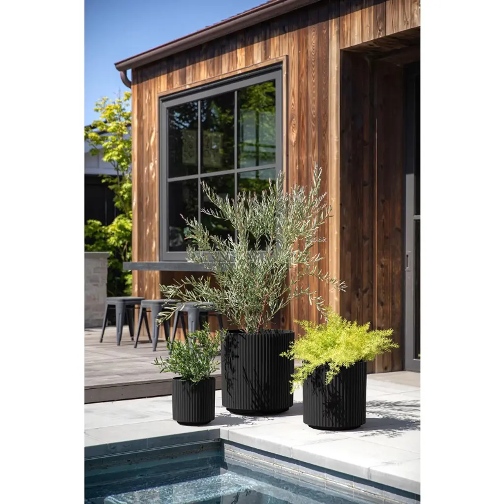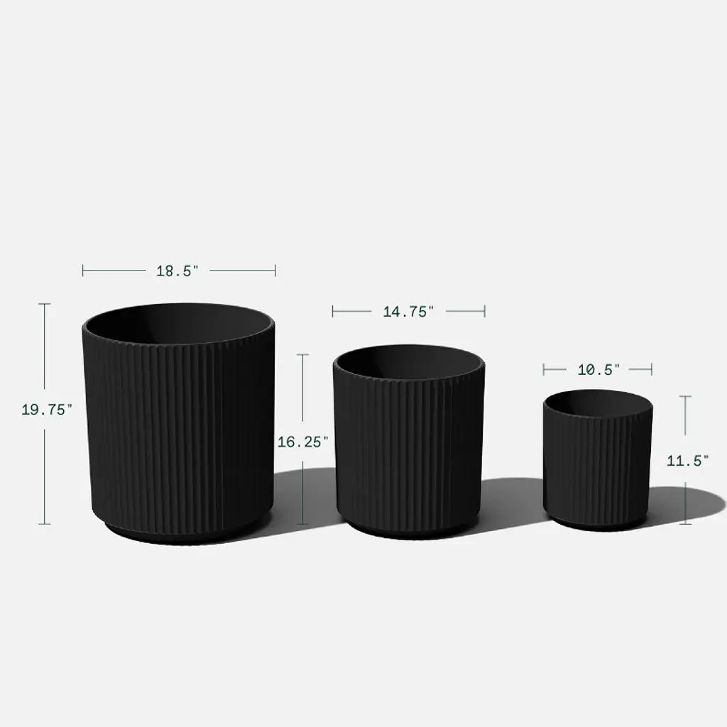 Minimal design and modern appeal. With softened, fluted lines in all the right places, the Demi planter set is the perfect all-season flower pot for nearly any plant in any space, whether indoors waiting to greet your guests at the foyer or out on the front porch. This three pot set is perfect for creating a modern, uniform look inside and outside your home. Made from a patented, heavy-duty concrete-plastic composite, Demi planters have the look of concrete, while still maintaining the durable, impact-resistant performance of plastic. All Demi planters are crack-resistant and are specially treated with UV inhibitors to prevent fading. These Veradek planters are designed and made in Canada, so you can rest assured you are receiving the highest quality of planters that'll last all year round.