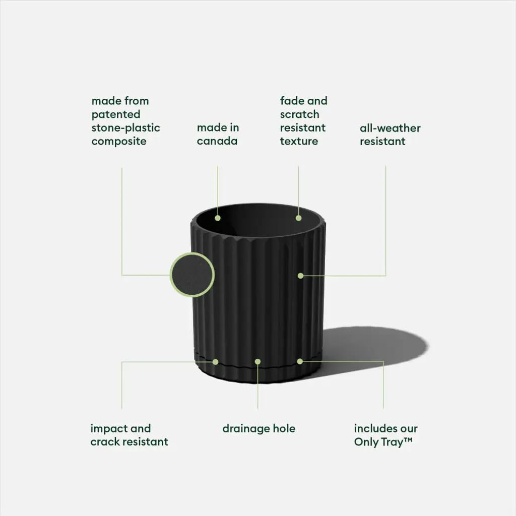 Inspired by traditional Roman columns, the fluted edges on the Veradek Demi Planter help to create a cozy indoor or outdoor space in the living room, patio or backyard. Pre-drilled drainage holes allow for planting a variety of different greenery such as trees, tall plants or flowers without having to worry about overwatering. This sturdy yet lightweight round planter is proudly crafted in Canada from a patented plastic-stone composite, making it resistant to cracks, fading and UV and allowing it to withstand extreme temperatures ranging from -20 to +120 degrees. With the ideal balance of design, structure and purpose, the Demi will add the finishing touches needed to transform a house into a home.
