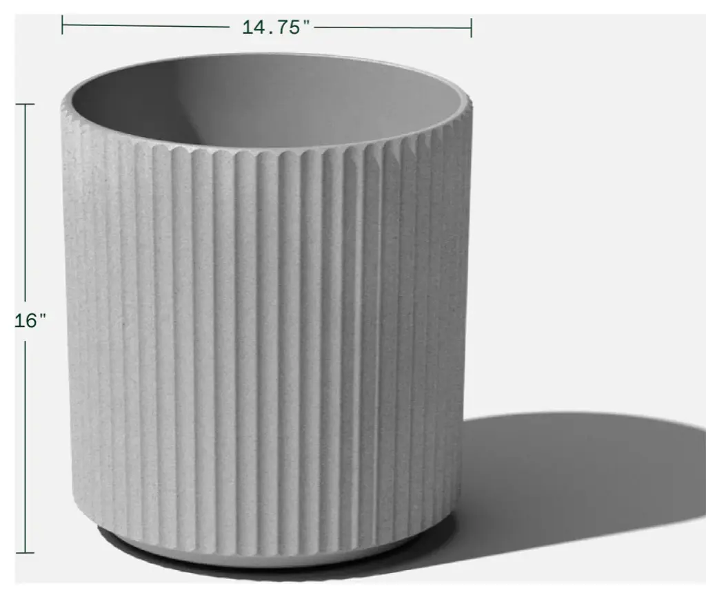 Inspired by traditional Roman columns, the fluted edges on the Veradek Demi Planter help to create a cozy indoor or outdoor space in the living room, patio or backyard. Pre-drilled drainage holes allow for planting a variety of different greenery such as trees, tall plants or flowers without having to worry about overwatering. This sturdy yet lightweight round planter is proudly crafted in Canada from a patented plastic-stone composite, making it resistant to cracks, fading and UV and allowing it to withstand extreme temperatures ranging from -20 to +120 degrees. With the ideal balance of design, structure and purpose, the Demi will add the finishing touches needed to transform a house into a home.