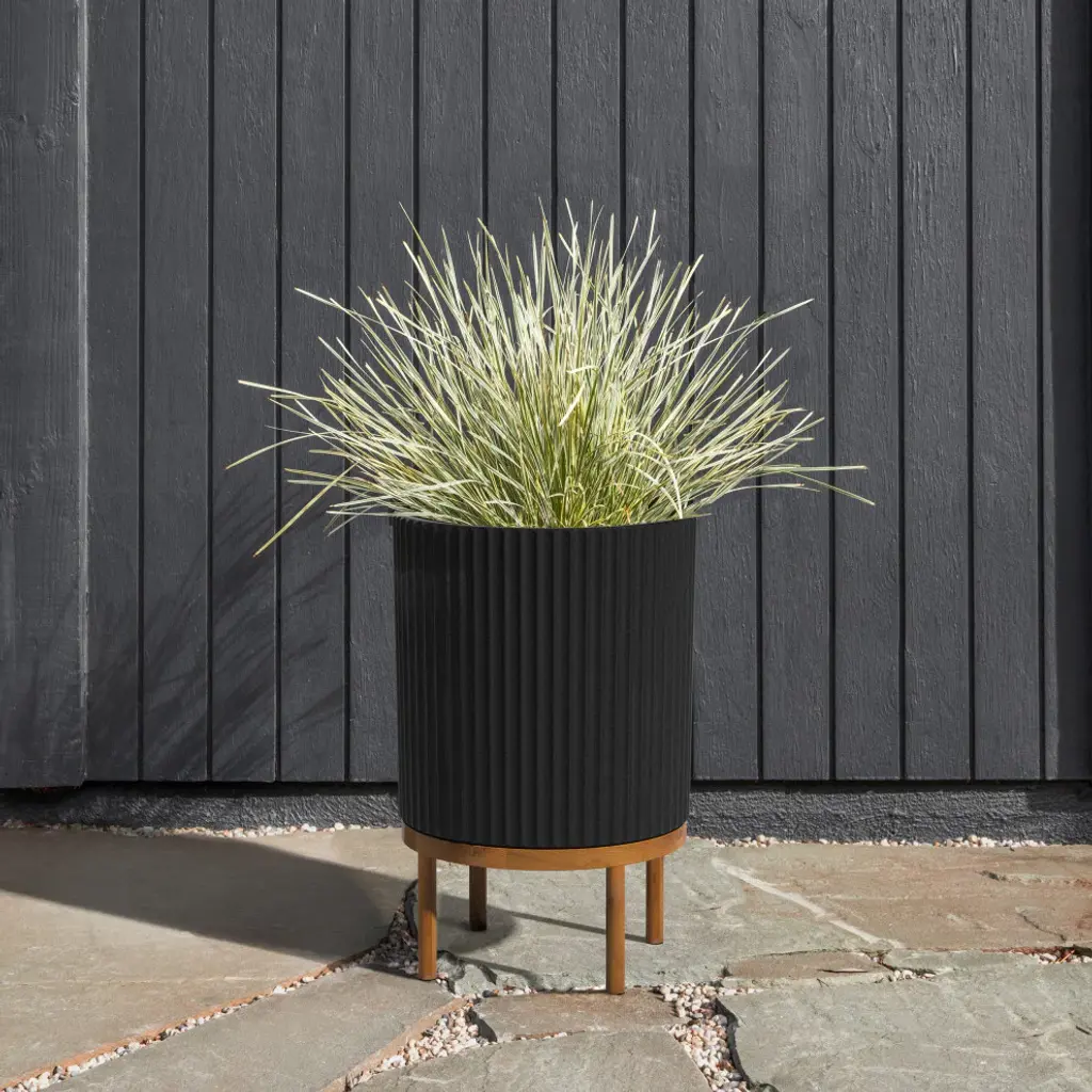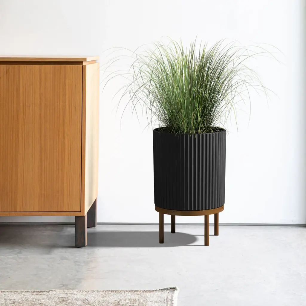 Minimal design and modern appeal. With softened, fluted lines in all the right places, the Raised Demi planter is the perfect all-season flower pot for nearly any plant in any space, whether indoors waiting to greet your guests at the foyer or out on the front porch. Made from a patented, heavy-duty concrete-plastic composite, Demi planters have the look of concrete, while still maintaining the durable, impact-resistant performance of plastic. This fluted planter comes with an acacia wood stand that''s perfect for adding some height to your favorite plants. All Demi planters are crack-resistant and are specially treated with UV inhibitors to prevent fading. These Veradek planters are designed and made in Canada, so you can rest assured you are receiving the highest quality of planters that''ll last all year round.