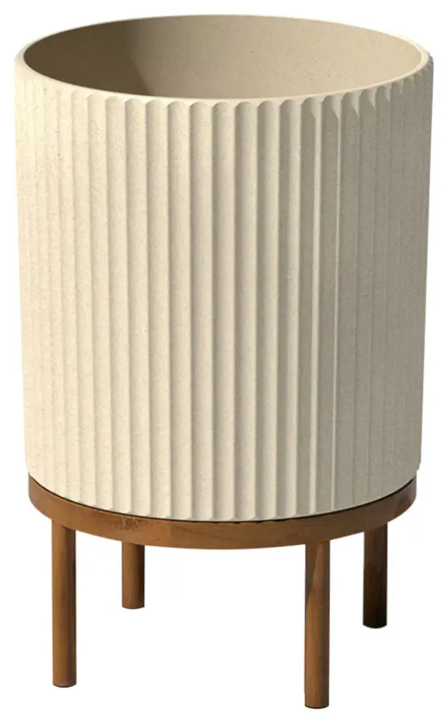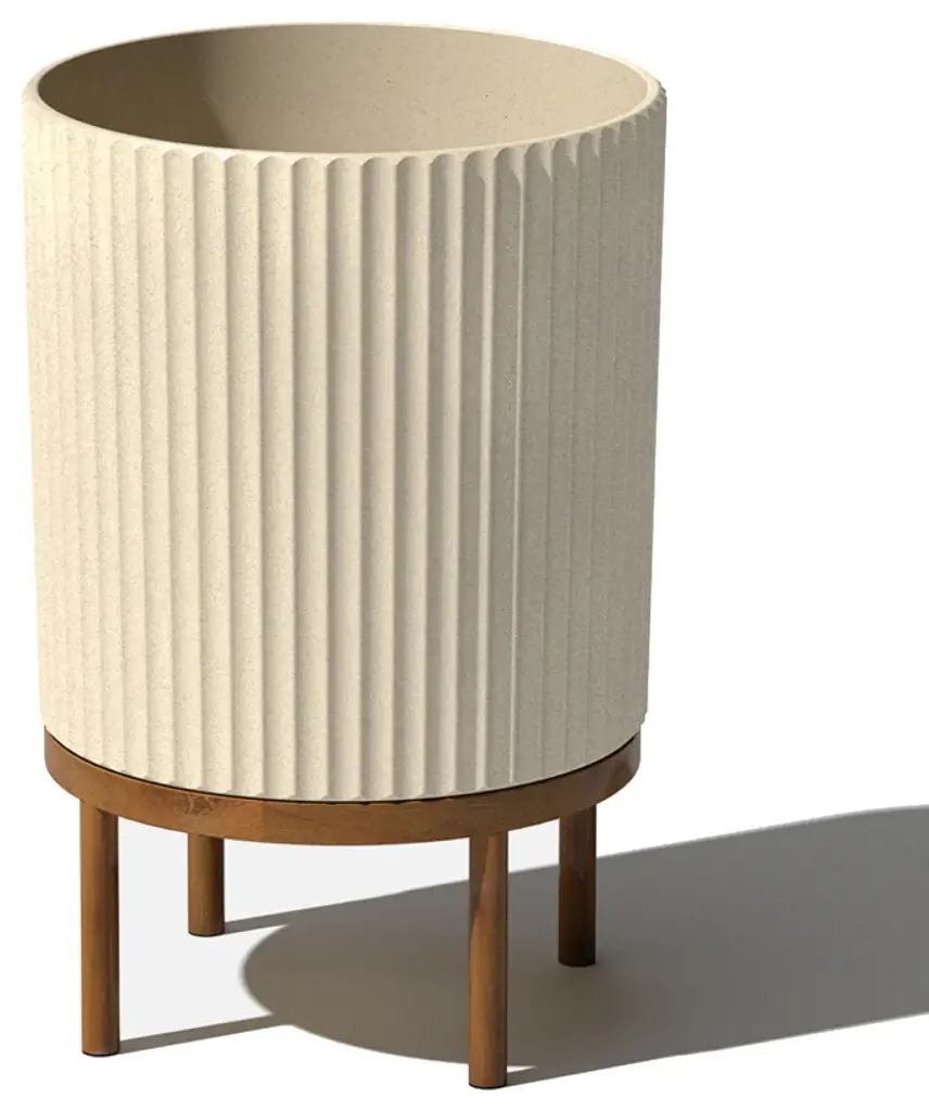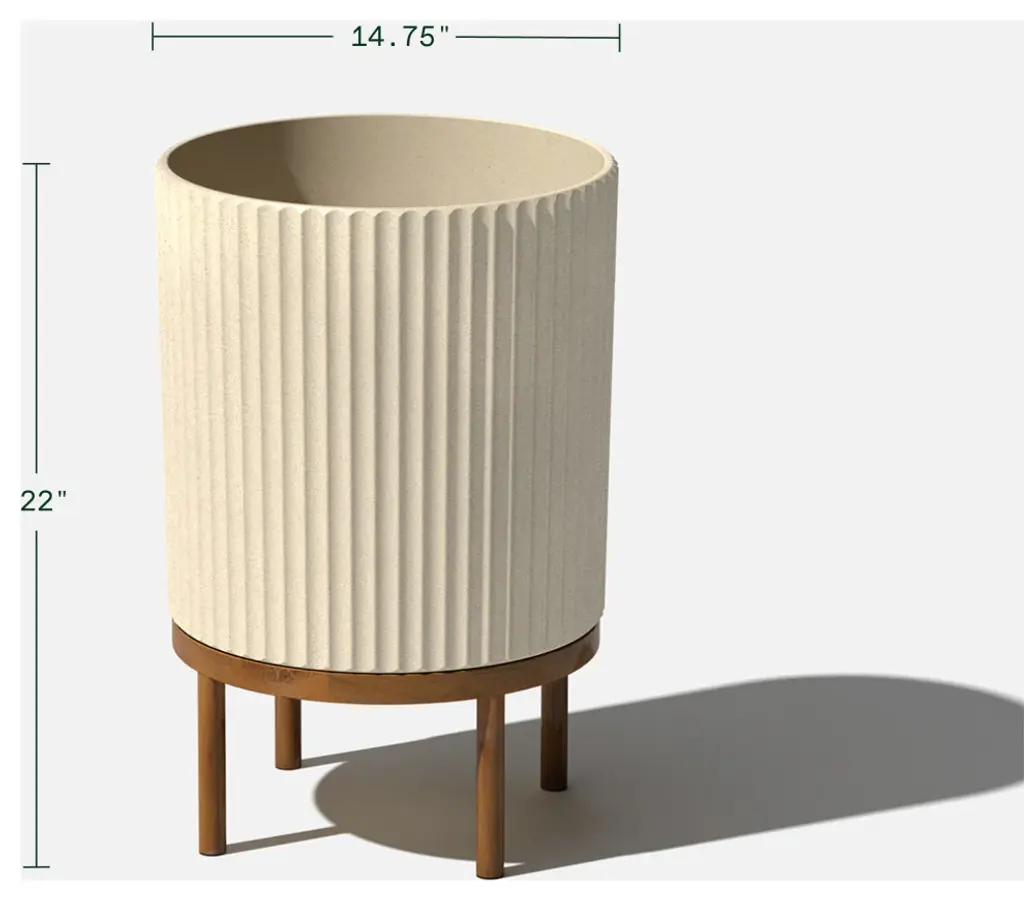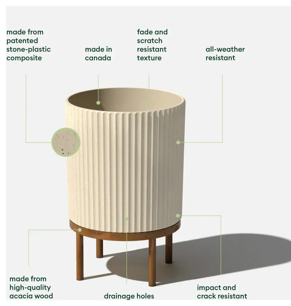 Minimal design and modern appeal. With softened, fluted lines in all the right places, the Raised Demi planter is the perfect all-season flower pot for nearly any plant in any space, whether indoors waiting to greet your guests at the foyer or out on the front porch. Made from a patented, heavy-duty concrete-plastic composite, Demi planters have the look of concrete, while still maintaining the durable, impact-resistant performance of plastic. This fluted planter comes with an acacia wood stand that''s perfect for adding some height to your favorite plants. All Demi planters are crack-resistant and are specially treated with UV inhibitors to prevent fading. These Veradek planters are designed and made in Canada, so you can rest assured you are receiving the highest quality of planters that''ll last all year round.