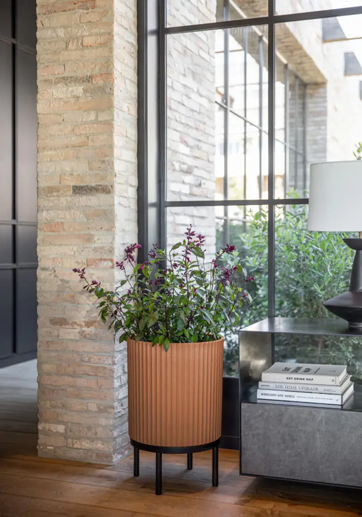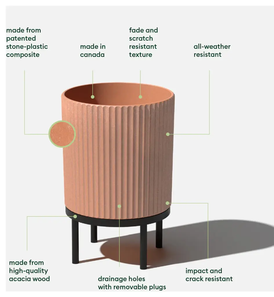 Minimal design and modern appeal. With softened, fluted lines in all the right places, the Raised Demi planter is the perfect all-season flower pot for nearly any plant in any space, whether indoors waiting to greet your guests at the foyer or out on the front porch. Made from a patented, heavy-duty concrete-plastic composite, Demi planters have the look of concrete, while still maintaining the durable, impact-resistant performance of plastic. This fluted planter comes with an acacia wood stand that''s perfect for adding some height to your favorite plants. All Demi planters are crack-resistant and are specially treated with UV inhibitors to prevent fading. These Veradek planters are designed and made in Canada, so you can rest assured you are receiving the highest quality of planters that''ll last all year round.