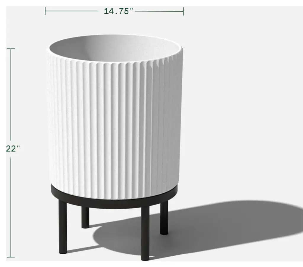 Minimal design and modern appeal. With softened, fluted lines in all the right places, the Raised Demi planter is the perfect all-season flower pot for nearly any plant in any space, whether indoors waiting to greet your guests at the foyer or out on the front porch. Made from a patented, heavy-duty concrete-plastic composite, Demi planters have the look of concrete, while still maintaining the durable, impact-resistant performance of plastic. This fluted planter comes with an acacia wood stand that''s perfect for adding some height to your favorite plants. All Demi planters are crack-resistant and are specially treated with UV inhibitors to prevent fading. These Veradek planters are designed and made in Canada, so you can rest assured you are receiving the highest quality of planters that''ll last all year round.