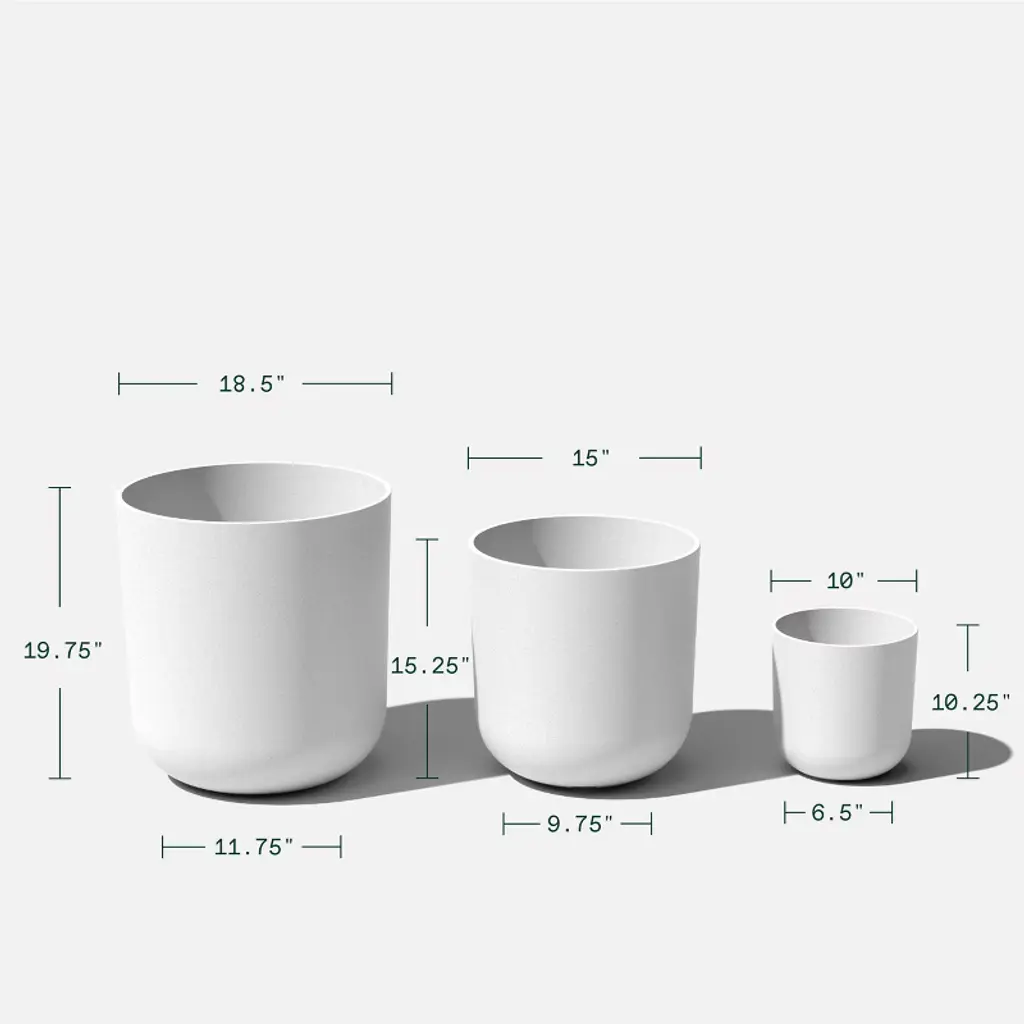Veradek Kona Series Bundle - Three Piece Set Of Plastic-stone Planters - White