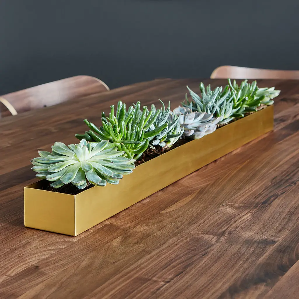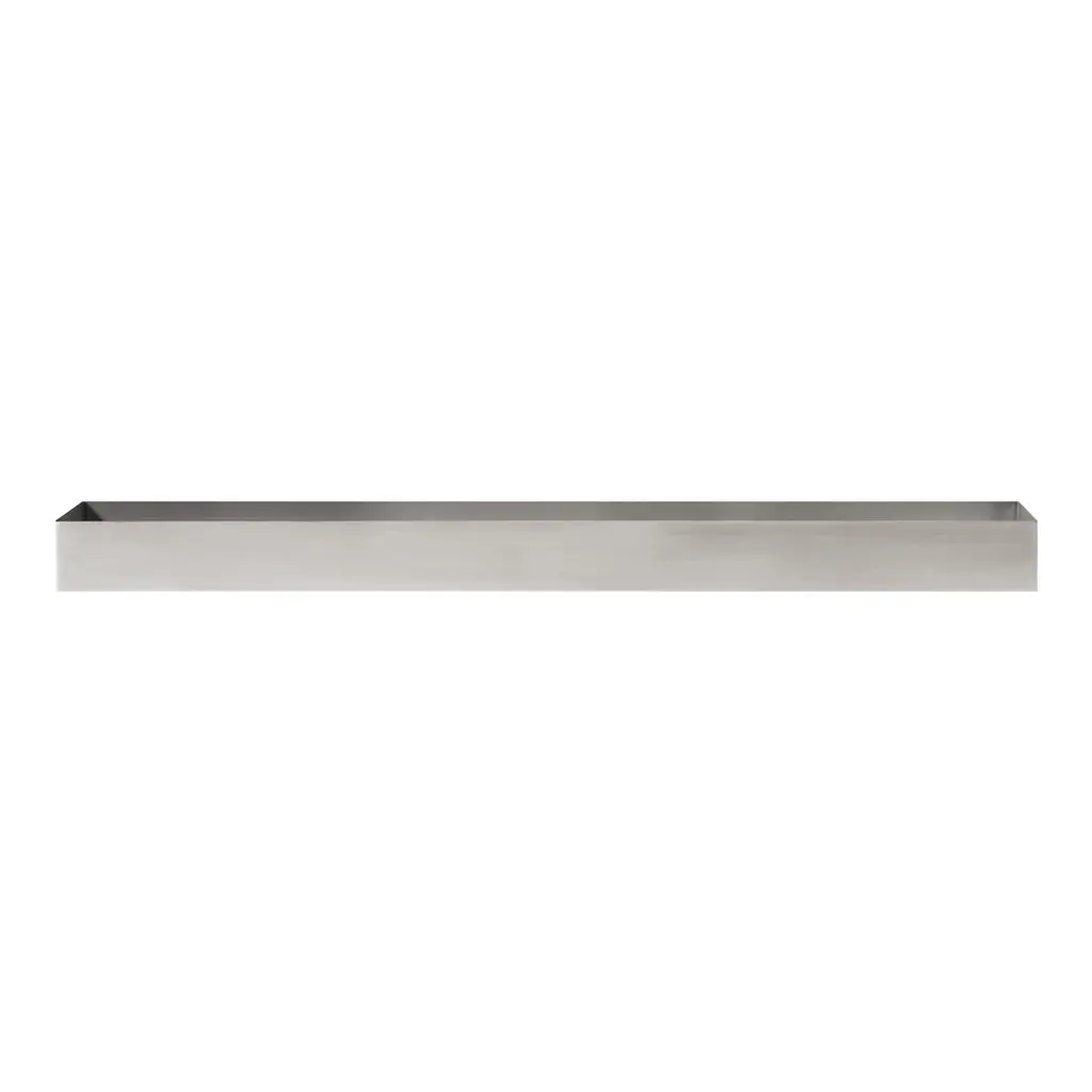 Breathe life into your space with the Vessel Planter, a modern solution to display flora, fruit, and whatever else strikes your fancy. This slender watertight planter features a long rectangular silhouette in three metal finishes – pewter, brass, or stainless steel. Add shine while you dine, or place it outdoors as a sleek home for your succulents.