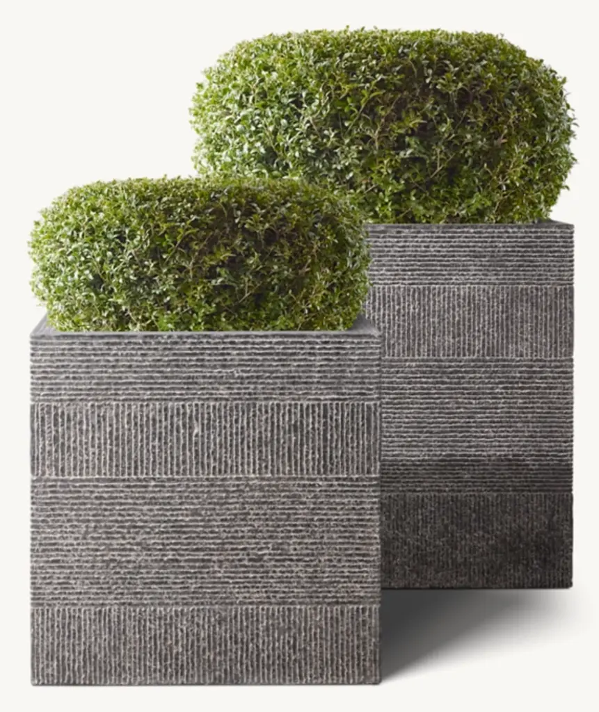 Designed by Mitch Brean, our planter's classic shape gains textural interest from the horizontal bands and diagonal and vertical lines etched into its surface. Durable and substantial, it's an artful combination of pattern and form. SHOP THE ENTIRE COLLECTION