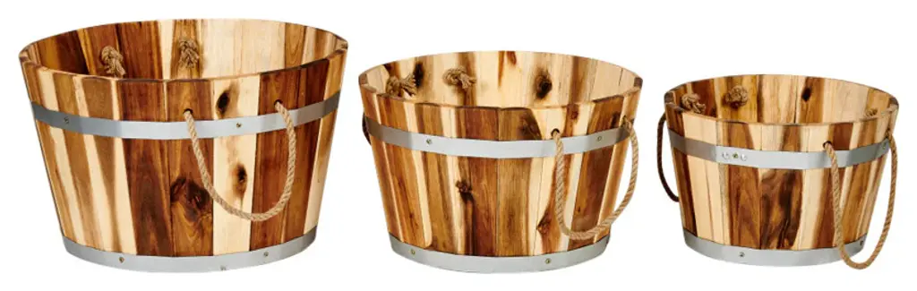 This Rustic Wooden Bucket Planter Set blends practicality with looks to make your gardening experience better. It features three nicely made planters in different sizes. The natural wooden texture and rustic finish mix perfectly with the surroundings and are suitable for a variety of plants, from bright flowers to fresh herbs. Versatile Sizes: This planter set includes three different sizes, perfect for any plant from small succulents to larger decorative ones. Each planter has dimensions that allow for healthy growth and looks good in any spot. Decorative Inlays: The classy decorative inlays on the surface of each planter boost their looks and make them a stunning centerpiece whether in your garden or on your balcony. Sturdy Construction: Every planter is made from solid fir wood, known for its durability and strength, ensuring long-lasting use that can handle various weather while keeping its charming style. Suitable for Indoor/Outdoor: These planters are built for both indoor and outdoor use, so you can show off your favorite plants either inside your home or out in your garden or patio. Easy Care: Maintenance is a breeze; just wipe them with a damp cloth and keep them out of direct sunlight for too long, ensuring your planters look great all year round.