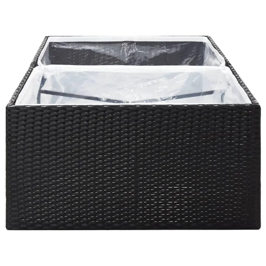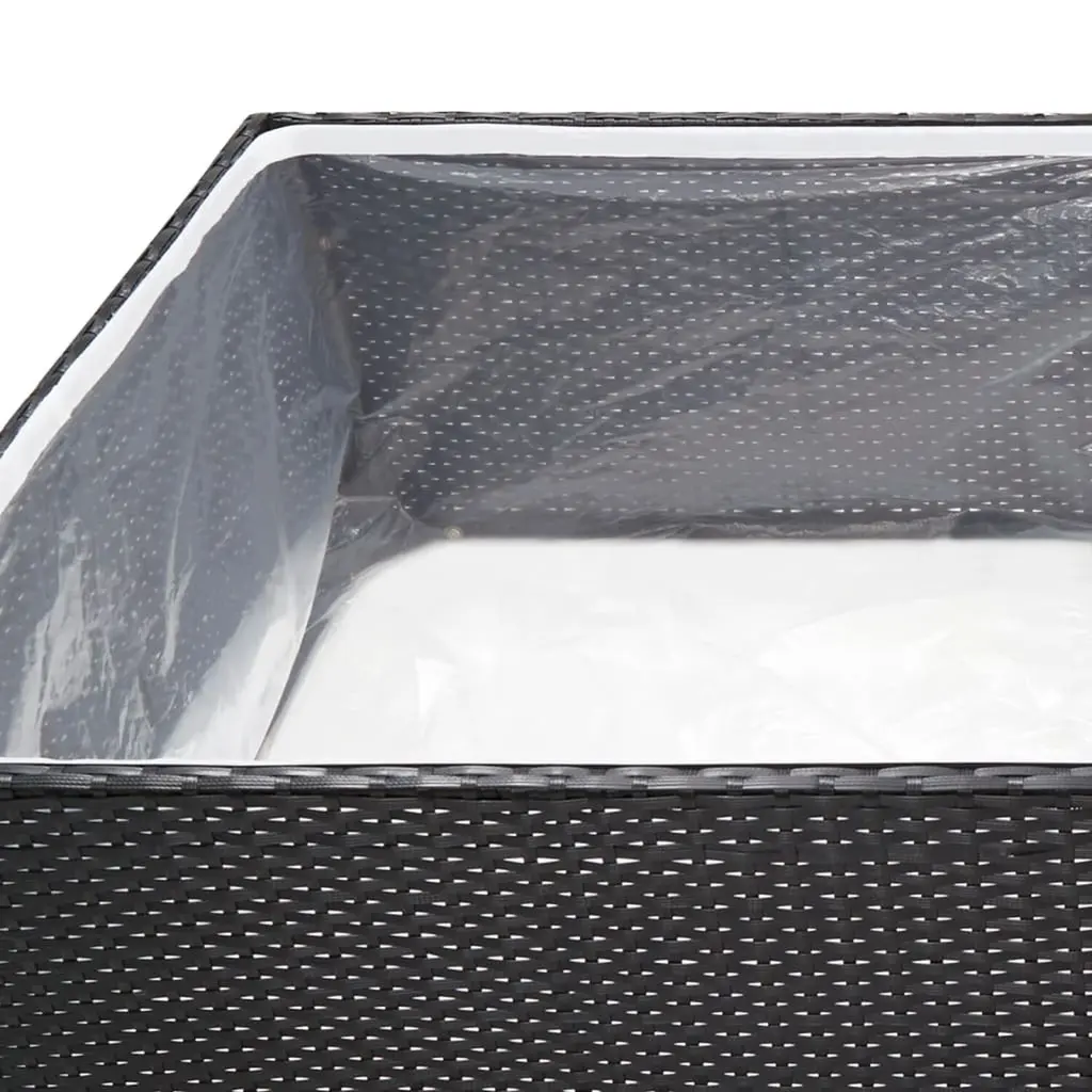 This large outdoor garden planter makes your gardening much easier with its cool design and loads of space. Built with high-quality PE rattan and a tough powder-coated steel frame, it’s not just good-looking but really durable too, perfect for showcasing your favorite flowers and plants outside. This garden planter has a sturdy frame that guarantees stability and support for all your planting, making it a brilliant addition to your outdoor area.With loads of space inside, it’s perfect for planting various flowers and plants, ideal for anyone keen on creating stunning displays.The waterproof materials help your plants thrive, repelling moisture while still looking good.The modern black woven design gives a trendy touch to any balcony, patio, or terrace, perfectly matching your other outdoor furniture.Along with the planter, you get a clear nylon bag that adds to its functionality by stopping soil from spilling while ensuring good drainage.