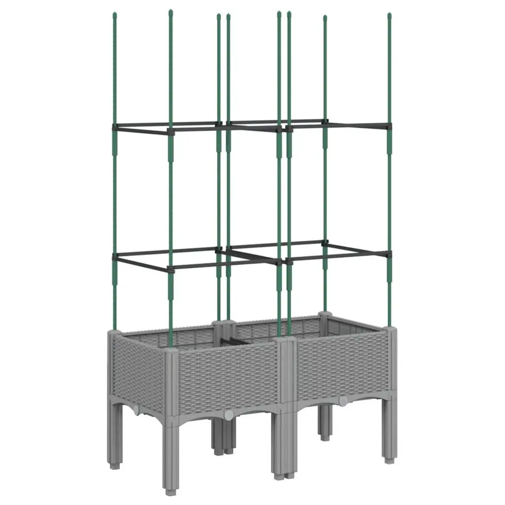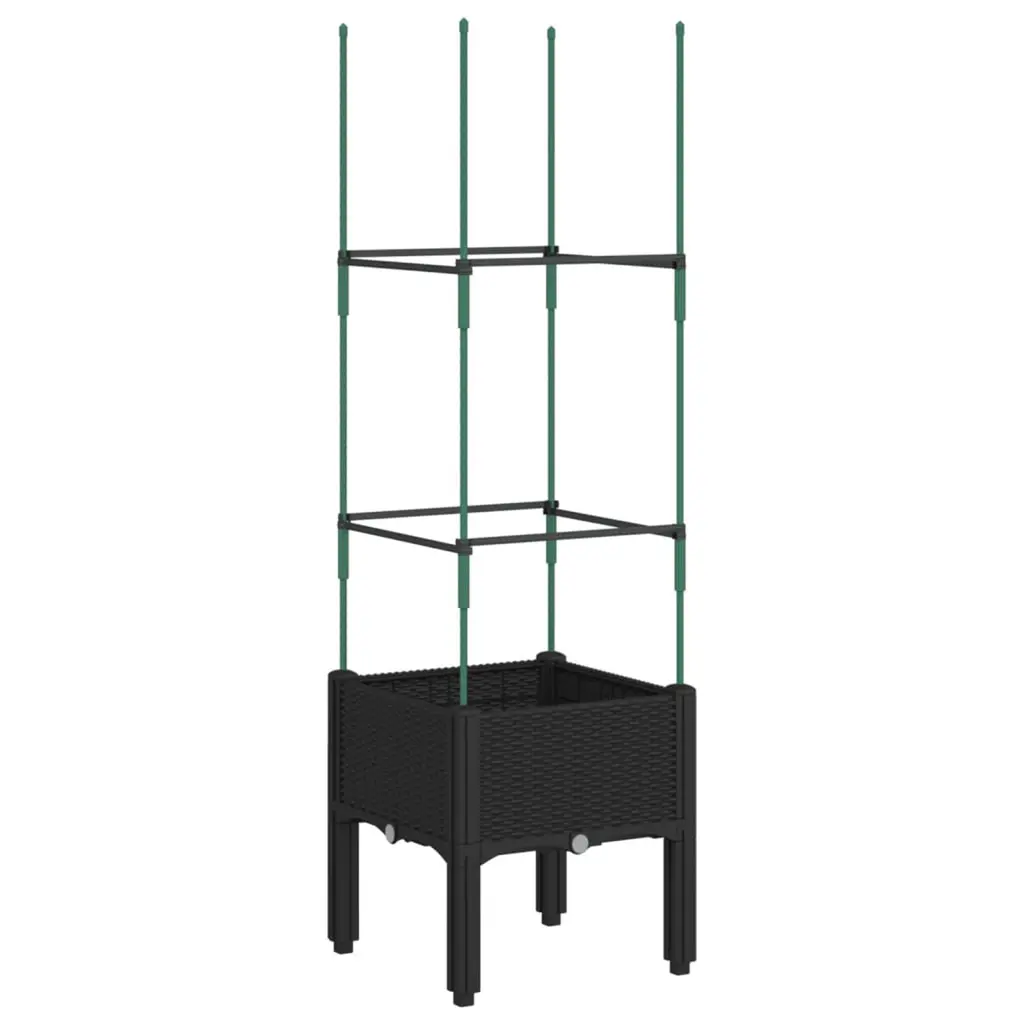This modern garden planter with trellis is the perfect choice for sprucing up your outdoor space and is great for holding climbing plants and flowers. Its sleek black polypropylene design fits nicely with modern styles while ensuring your plants do well in a stylish setting. Elevated design makes it easy to see and enjoy your plants' growth.Durable polypropylene material is UV resistant and waterproof, ensuring it lasts in all sorts of weather.Features a functional trellis that supports climbing plants, helping your garden thrive.Textured finish provides a unique look and feel, enhancing the sensory experience.Designed for outdoor use, making it a fantastic choice for patios, balconies, and any outdoor spot where plants can flourish.