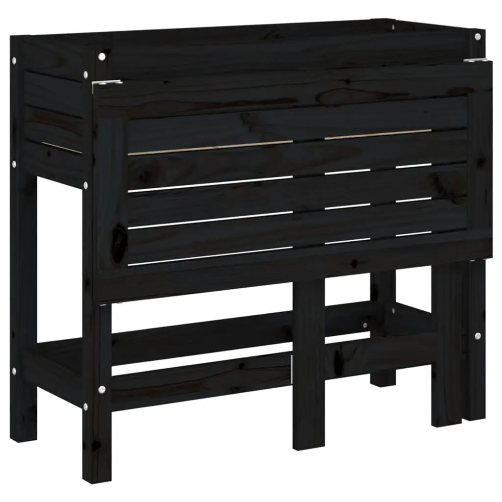 Vidaxl Garden Planter Black Solid Pine Wood Medium Foldable
