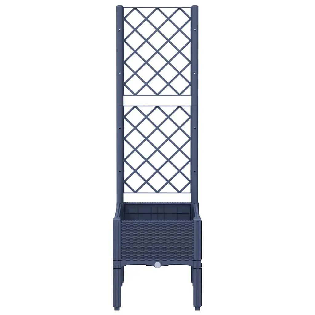 This Garden Planter mixes modern looks with practical design, making it spot-on for balconies or gardens. Its blue-grey shade and raised structure not only fit a range of climbing plants but also make any outdoor space more appealing. Modern Aesthetic: The sleek blue-grey matte finish looks fab in any outdoor setting, giving a stylish way to show off your plants. Functional Trellis: With its built-in trellis, this planter supports climbing plants while saving space. High-Quality Material: Made from robust polypropylene, this planter is built to take on the outdoors, ensuring it lasts. Easy Maintenance: The non-reflective surface makes for simple cleaning, helping it stay looking good with minimal effort. Spacious Design: Measuring 15.7 x 15.7 x 55.9 in, there's plenty of room for various plants, letting you create a lovely garden display.