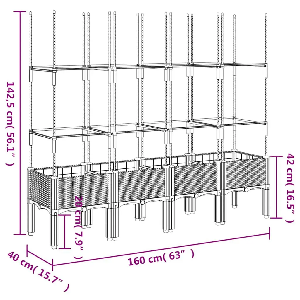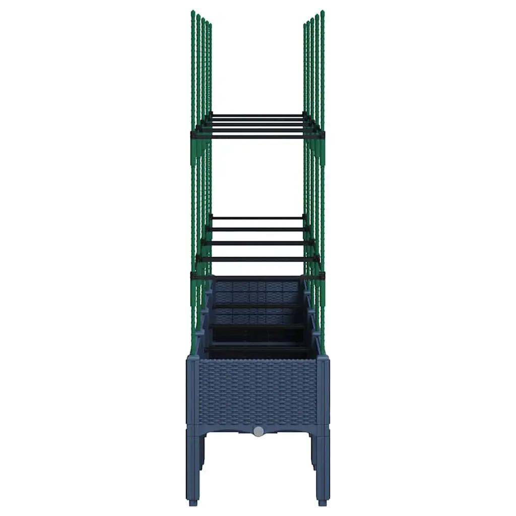 This large garden planter features a striking trellis design, letting you grow a variety of plants easily in your outdoor space. With its stylish blue-grey finish and sturdy polypropylene, it adds a nice touch to your garden while providing your plants the support they need to thrive. Durability: Made from high-quality polypropylene, this planter box is UV resistant and waterproof, lasting well outdoors. Integrated Trellis: The built-in trellis provides great support for climbing plants, helping them thrive. Spacious Design: With 63 x 15.7 x 56.1 in, it fits a range of flowers and vegetables, broadening your gardening options. Modern Style: Its matte finish and modern design make it a stylish addition to any garden. Easy Maintenance: A quick wipe with a damp cloth keeps this planter looking fresh while standing up to outdoor conditions.