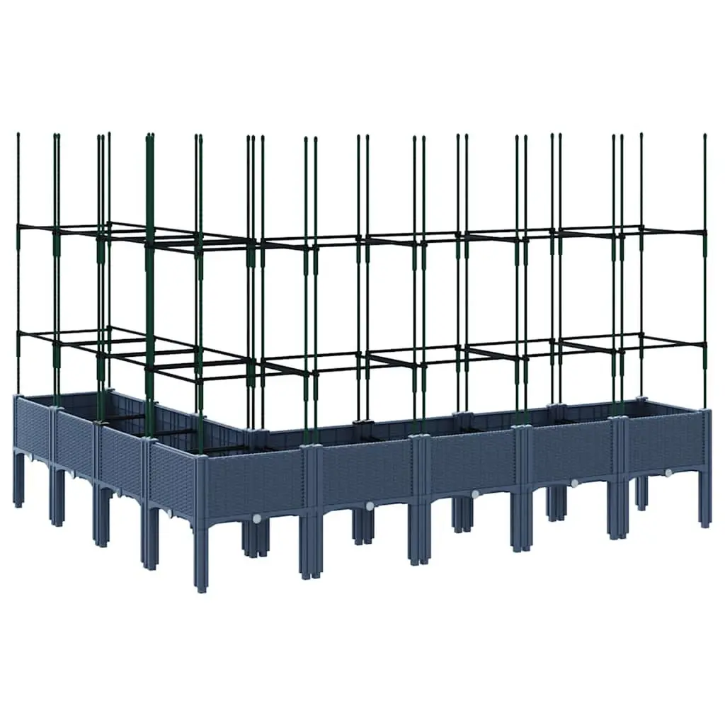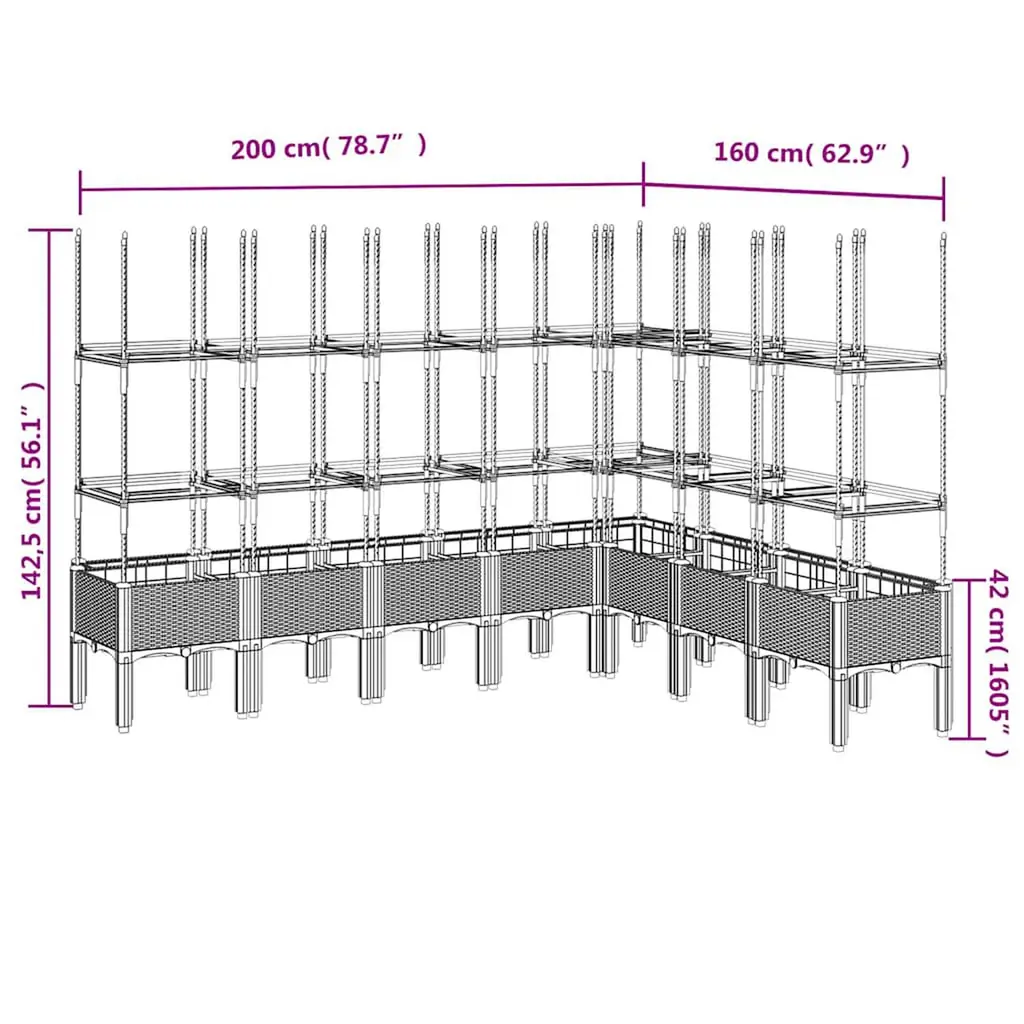 This generous garden planter with trellis mixes function with modern style. It gives loads of space for flowers, herbs, or veggies. The stylish rattan look suits any outdoor setting, whether you place it on a balcony, terrace, or in the garden, making it perfect for plant lovers wanting to create a green oasis. Spacious Capacity: The planter boasts ample dimensions of 78.7 in in length and 63.0 in in width, allowing you to grow a diverse range of plants, from vibrant flowers to aromatic herbs. Its height of 56.1 in adds an appealing vertical element to your garden, perfect for showing off all types of greenery. Durable Material: Made from synthetic polypropylene, this planter ensures longevity outdoors. It's designed to withstand UV rays and is completely waterproof, keeping your plants healthy and rooted in any weather. Unique Design: The stylish rattan look gives an attractive vibe to your gardening area. It ensures the planter not only does its job but also adds to the beauty of your patio or garden, making it a fine decorative element. Ideal for Climbing Plants: With its trellis, this planter is perfect for supporting climbing plants like tomatoes, peas, and roses. This lets plants grow upwards, saving space while getting the sunlight they need to thrive. Low Maintenance: With easy care, keeping this planter in shape is no hassle at all. Just wipe it down with a damp cloth to keep it clean, so your garden stays inviting without needing harsh cleaners.