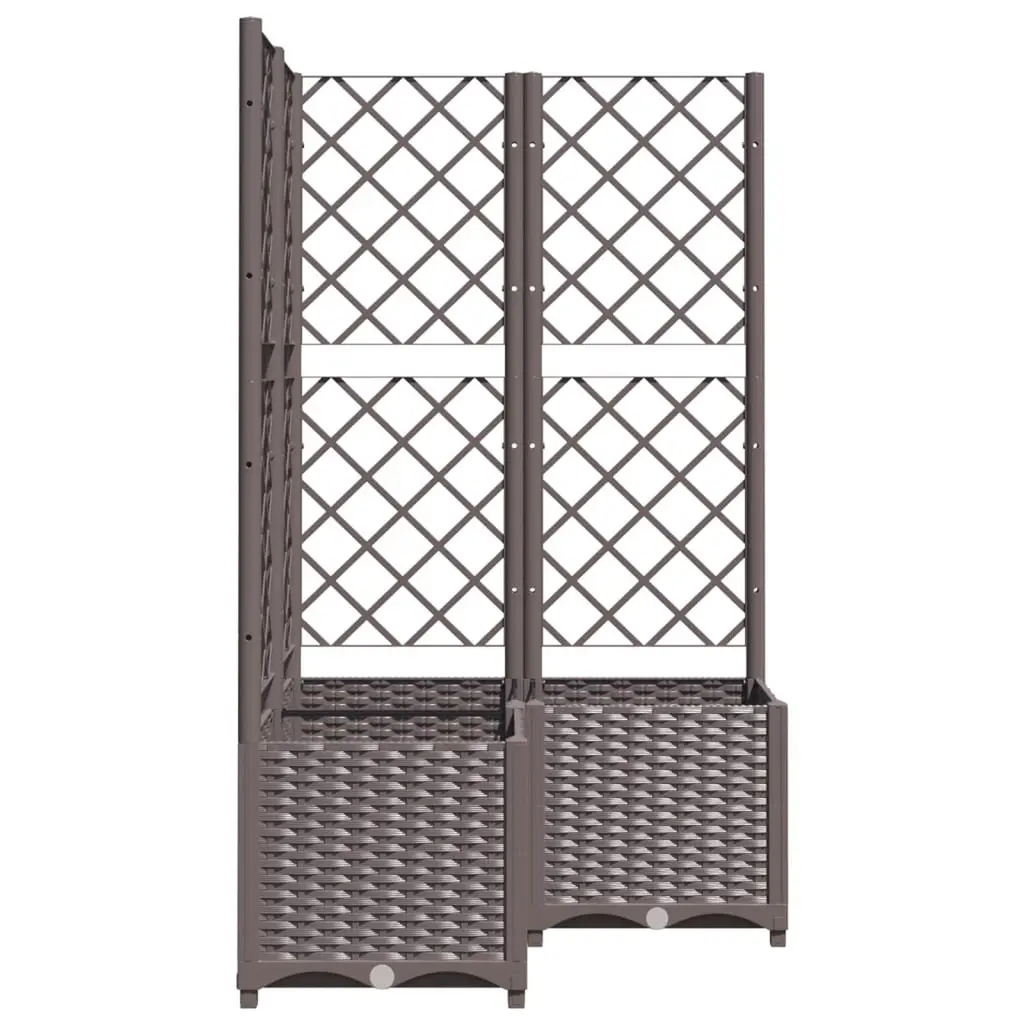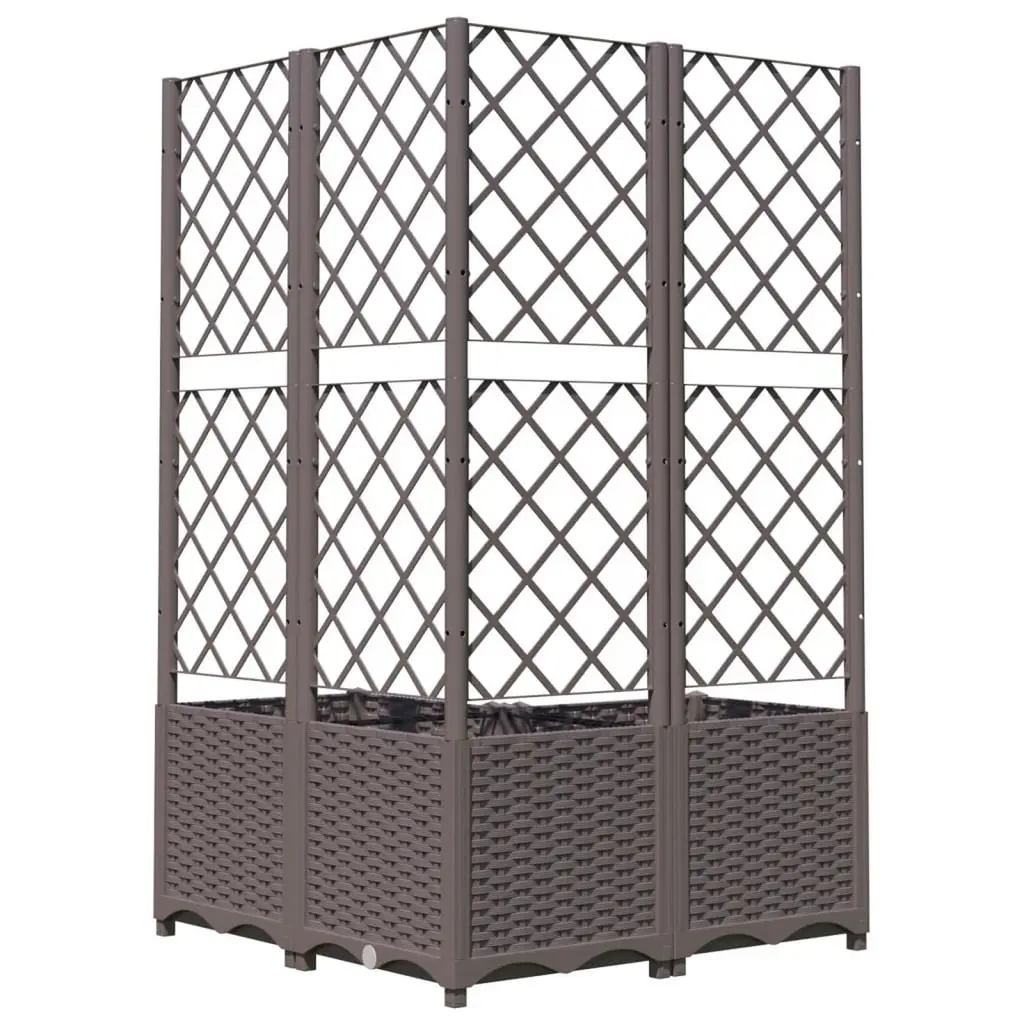 This Brown Garden Planter with Trellis is a fantastic addition to any garden setting, designed to enhance the beauty and functionality of your outdoor space. With its generous dimensions of 31.5 in by 31.5 in and a height of 53.5 in, it provides loads of room to nurture various flowers and greenery, creating a welcoming vibe for your balcony or patio. Material Strength: Made from UV-resistant polypropylene, this planter is built to handle the elements without fading or cracking, making it perfect for outdoors. You can count on its lifespan while taking care of your plants.Spacious Layout: With dimensions of 31.5 x 31.5 x 53.5 in, this planter can fit a lot of green plants and flowers, giving you plenty of room for creative gardening arrangements.Elegant Design: The matte brown finish suits modern styles, blending well with natural surroundings and enhancing your garden's décor.Functional Trellis: The built-in trellis not only supports climbing plants like vines but also adds a stunning vertical element, creating visual appeal and aiding plant growth.Easy Maintenance: This planter is super easy to care for; just wipe it down with a damp cloth to keep it looking sharp, so you can enjoy your outdoor space without fuss.