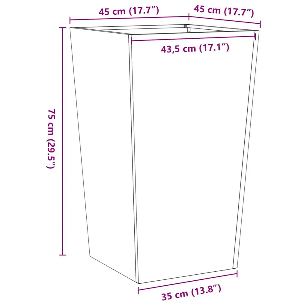 Vidaxl Garden Planter Grey Galvanized Steel 17.7 X 17.7 X 29.5 In