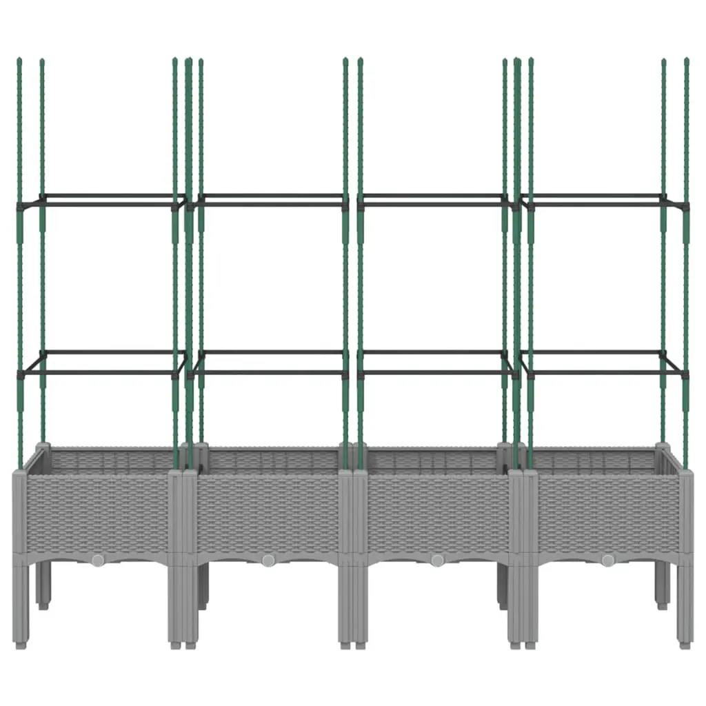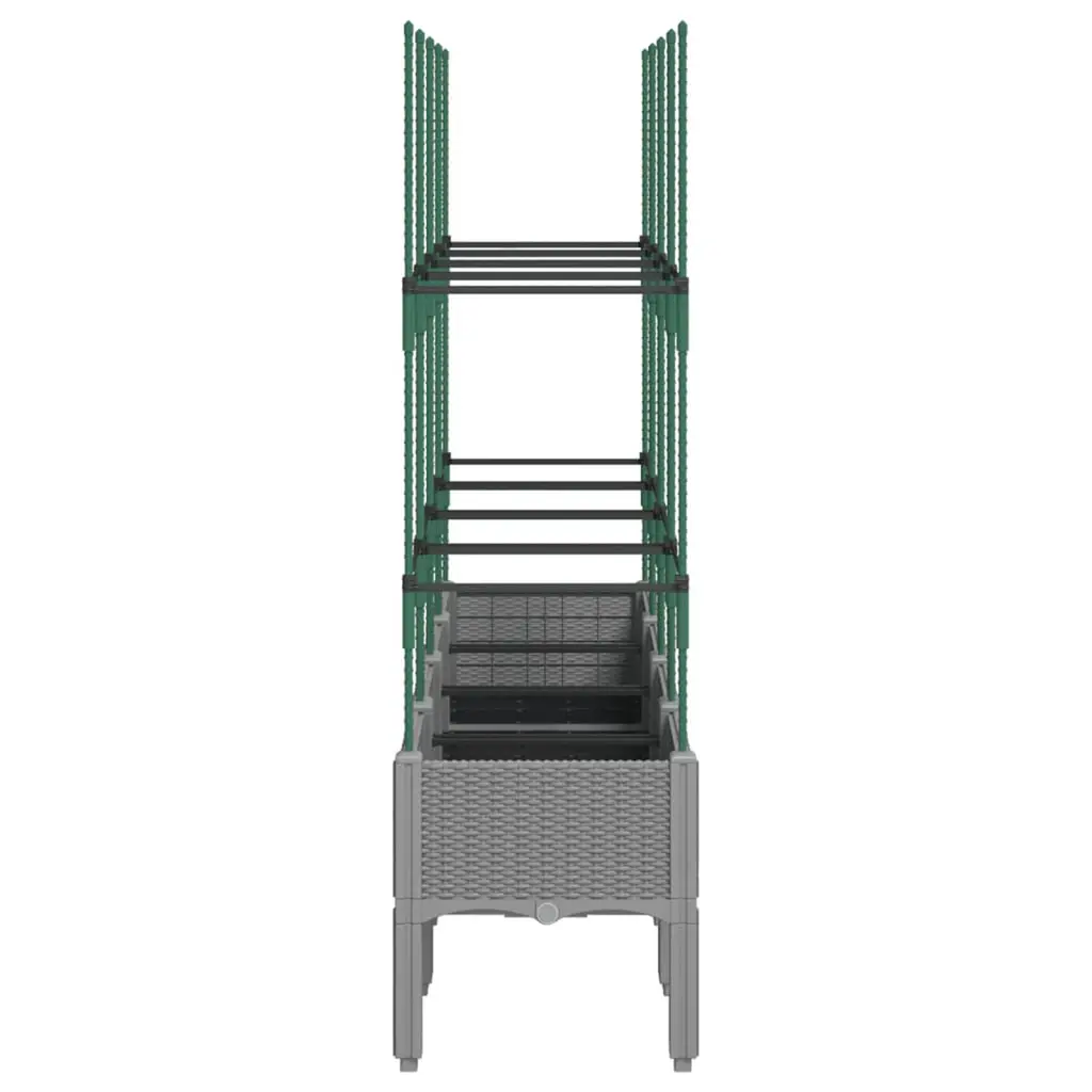 This garden planter is designed for climbing plants and adds a modern touch to your outdoor area. With its sleek light grey look and stylish trellis feature, it turns patios, balconies, and gardens into green havens, inviting nature into your space. Spacious Design: At 63 in long and 15.7 in wide, this planter gives loads of soil volume for climbing plants to thrive beautifully.Versatile Usage: Perfect for outdoor spots like patios and balconies, it lets you grow various plants, including flowers and edibles, blending nature into your lifestyle.Stylish Appearance: With a matte finish and modern rectangular shape, this planter adds flair to your outdoor furniture.Weather-Resistant: Made from durable polypropylene, this planter can handle the weather, keeping your plants safe and vibrant all year round.Easy Maintenance: Cleaning is a breeze—just wipe with a damp cloth and steer clear of harsh chemicals for long-lasting use.