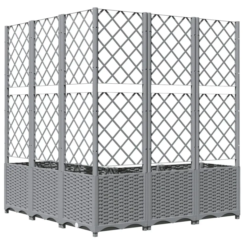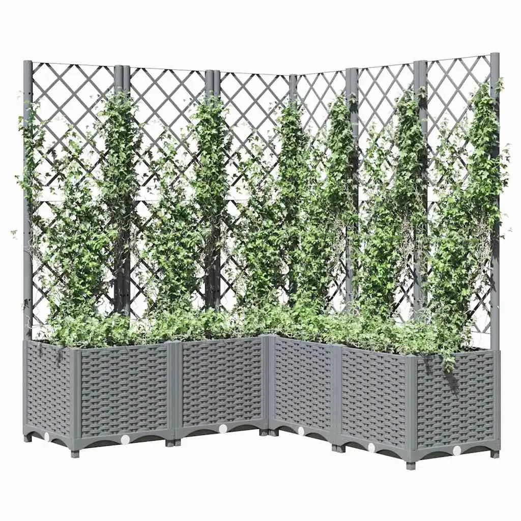 This garden planter with integrated trellis is just right for growing climbing plants while sprucing up your outdoors. With a light grey finish and smart design, it measures 47.2 in by 47.2 in at the base and stands 53.5 in tall—ideal for balconies, patios, or terraces, creating a lovely green space. Sturdy Trellis: Securely holds climbing plants, helping them grow well and keeping flowers or veggies easy to access.Matte Finish: The non-reflective surface ensures a modern vibe that matches all outdoor decors.Robust Composition: Made from UV-resistant polypropylene, which withstands the weather and lasts well over time.Lightweight Structure: This planter's easy to move around as needed, letting you switch up your garden layout.Ample Planting Space: Provides loads of room for your climbing plants, really sprucing up the look with a fantastic focal point.