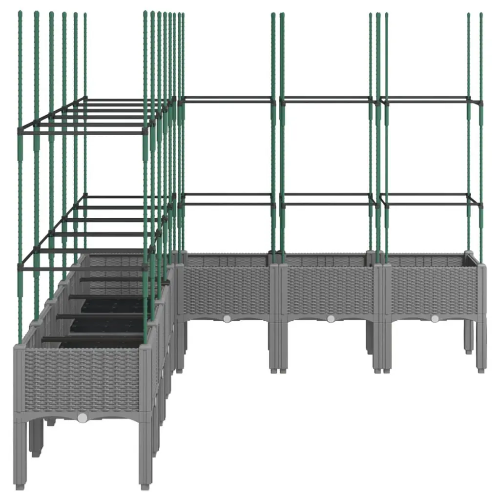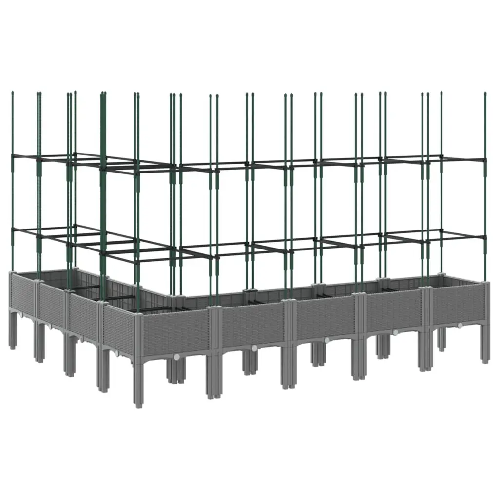 This Garden Planter with Trellis is a unique and modern solution to jazz up your outdoor space. Measuring 79 x 63 x 56.1 in, it combines functionality with style and gives climbing plants a great structure while looking smart on balconies, patios, and terraces. Elevated Design: The raised construction allows for better drainage and airflow, ensuring your plants get the best care possible. This cool feature helps roots grow strong and makes maintenance a breeze.Modern Aesthetic: With a sleek light grey finish, this planter fits beautifully into any modern outdoor setting. The matte surface not only looks good but also matches various decor styles, making it a garden showstopper.UV Resistant Material: Made from sturdy polypropylene, this planter is built to resist UV rays. It stays vibrant and intact, even in tough climates, making it a solid pick for outdoor use.Multi-Functionality: Designed specifically for climbing plants, this planter box has the right trellis setup for vines and flowers to thrive. It’s adaptable for various planting styles, perfect for both herbs and decorative blooms.Environment-Friendly: Made from recyclable materials, this planter is a smart choice for your garden and also helps keep the planet happy, making it great for eco-conscious gardeners.