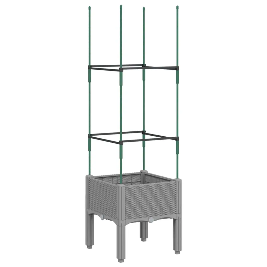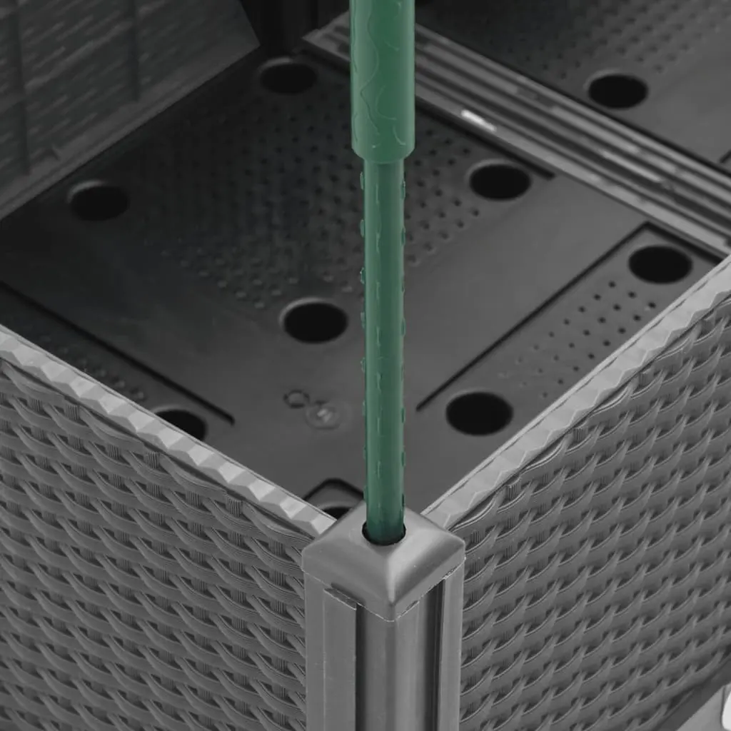 This garden planter with trellis is made for gardening lovers looking to grow climbing plants like tomatoes, peas, and roses. Its modern, textured design fits any patio or balcony decor while providing a practical way for plants to grow. Durable Construction: Made from polypropylene, this planter is both water and UV resistant for long-lasting outdoor use. Rattan Look Design: The stylish rattan finish adds a bit of flair, making it a nice touch in your garden or terrace. Generous Capacity: Measuring 15.7 in by 15.7 in by 56.1 in, it has loads of space for various climbing plants. Easy Maintenance: The smooth surface is a breeze to clean; just wipe with a damp cloth to keep it looking spick and span. Assembly Instructions Included: Each purchase comes with assembly instructions, making setup simple and getting you involved in the gardening fun.