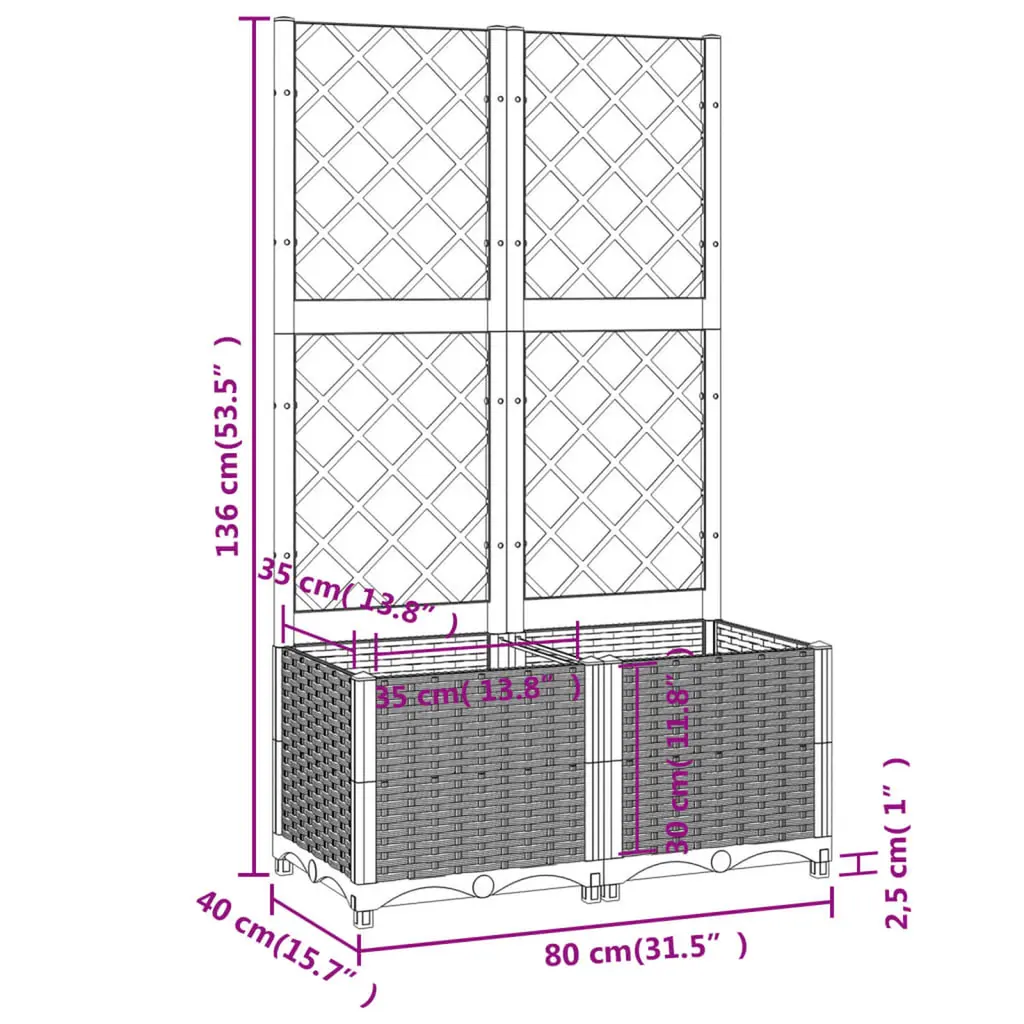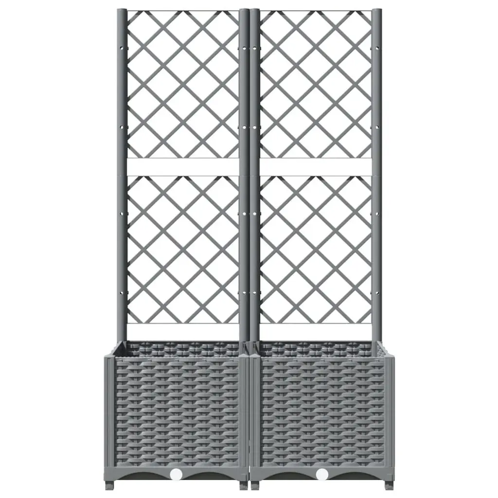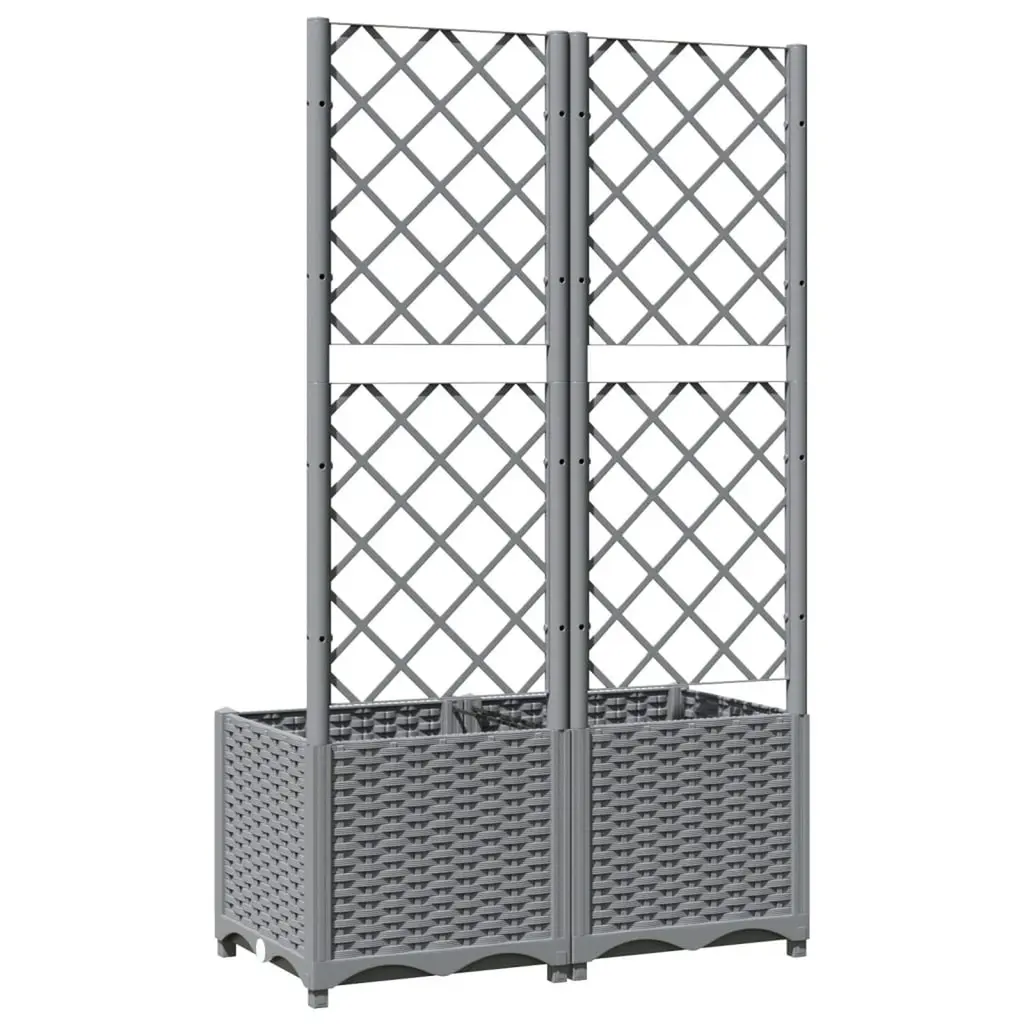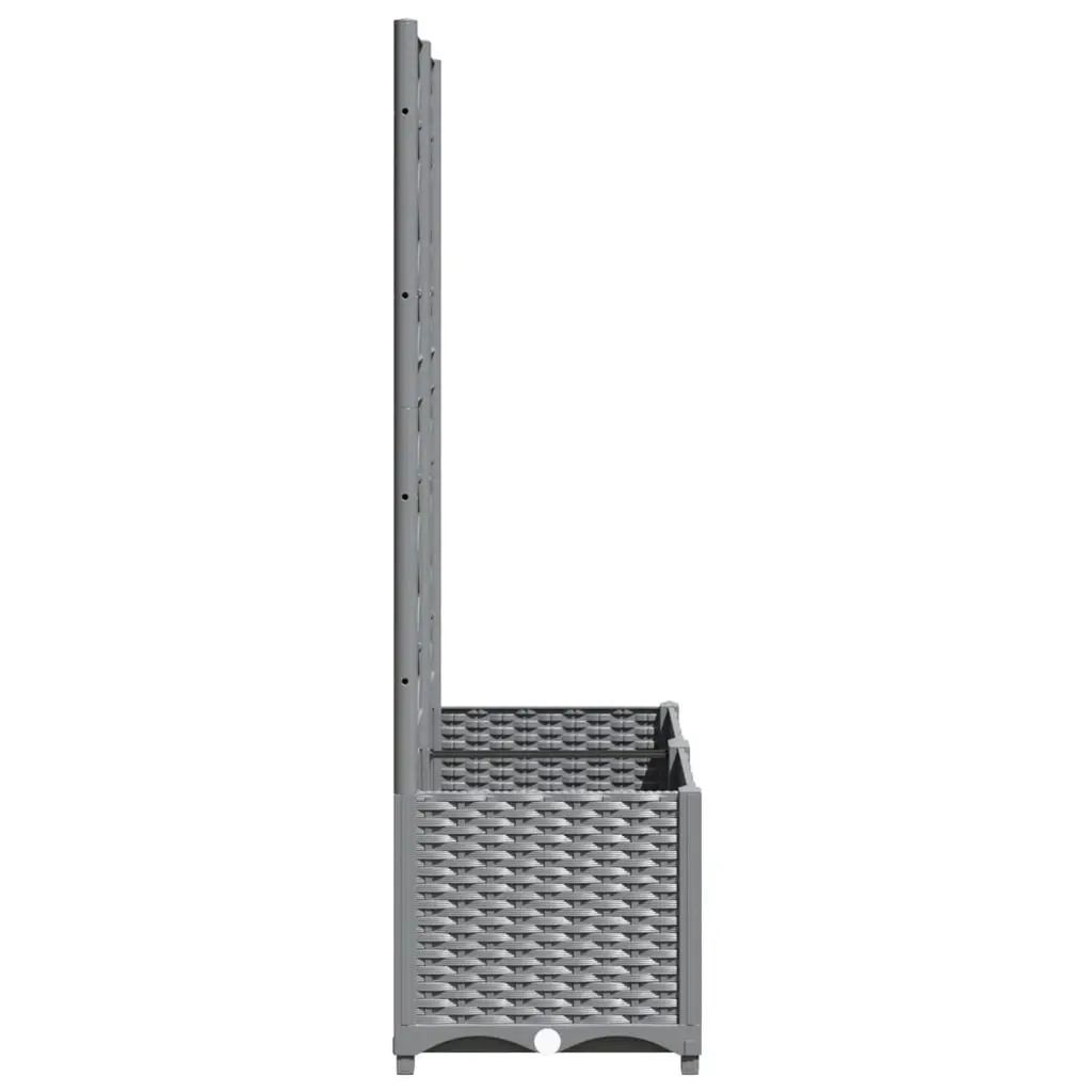 This garden planter with trellis is a great solution for growing climbing plants, perfect for small gardens, balconies, or patios. With its sleek light grey color, it not only looks amazing but also helps your plants grow strong with its sturdy trellis. Elegant Design: The modern light grey finish blends well with any decor, enhancing your garden's aesthetics. Space-Efficient: Its rectangular shape fits well in tight spots while still offering plenty of planting space. Easy Assembly: Comes with a simple manual to make setup quick and easy. Weather Resistant: Made from durable polypropylene, it holds up against sun and rain while looking stylish. Multi-Functional: This planter supports climbing plants and provides storage for your gardening essentials.
