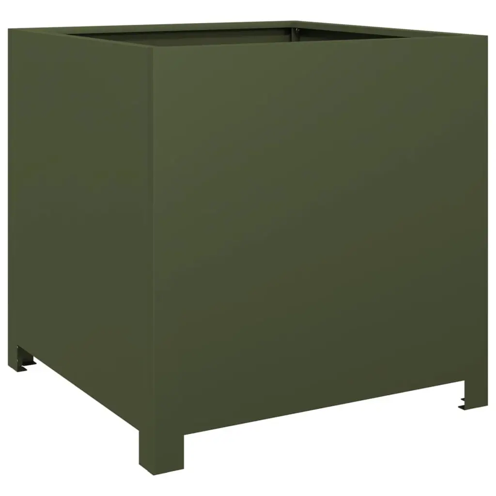 Vidaxl Garden Planter Olive Green Steel 19.7 X 19.7 X 19.7 In Durable