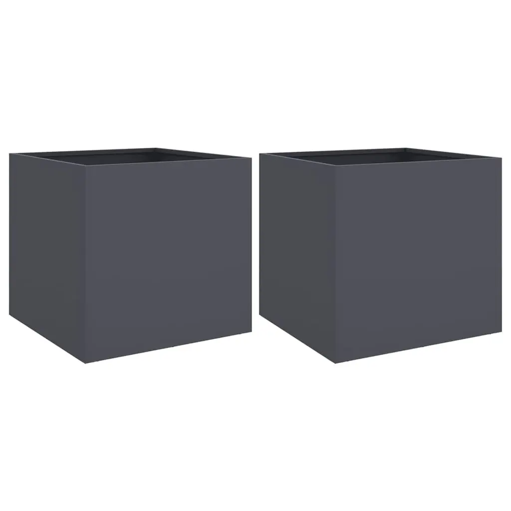 Vidaxl Garden Planter Set Of 2 Anthracite Cold-Rolled Steel Large