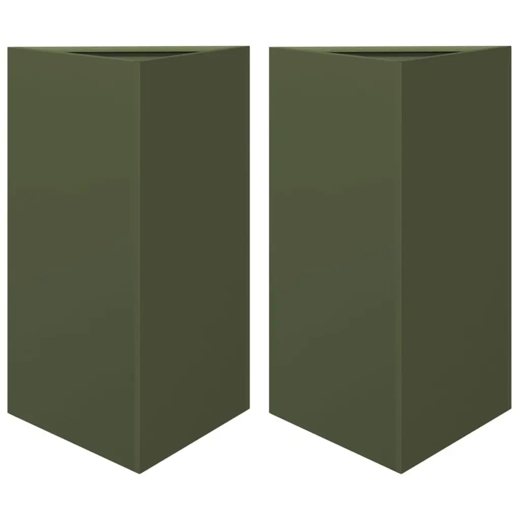 This stylish set of garden planters mixes functionality and modern looks, making it perfect for jazzing up any outdoor spot. The eye-catching triangle shape, made from durable steel, adds a contemporary touch while showcasing your favorite plants or flowers. The triangular design of these planters lets you get creative with arrangements, perfect for outdoor spaces. Whether on a balcony or patio, these versatile planters stand out as stylish décor.Made from robust steel, these planters are built for long-lasting beauty. They can handle different weather without losing their charm or integrity.With a modern anthracite finish, these planters fit in nicely with any garden, patio, or balcony. Their sleek look boosts the overall impact, blending well with the decor.These planters are ideal for outdoor use, giving you a stunning floral display or acting as a great stand for greenery. Perfect for gardeners and plant fans looking to enhance their outdoor area.Generously sized at 19.7 in x 16.9 in x 29.5 in, each planter accommodates various plants, ensuring your outdoor space is lush and welcoming.