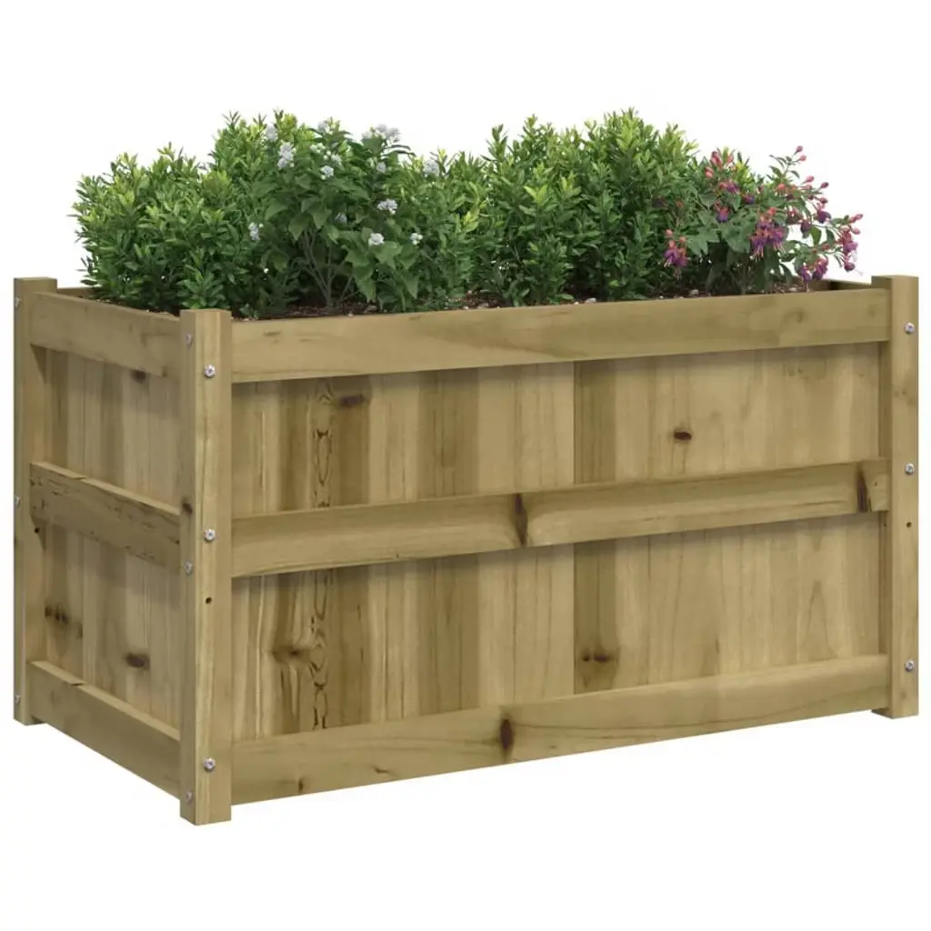 This rustic wooden garden planter is the perfect blend of charm and practicality, ideal for creating a vibrant garden in any outdoor space. Crafted from solid pine wood with a natural finish, it brings a warm, inviting look to your balcony, patio, or terrace. Choose from two beautiful finishes—Natural Pine and Natural Impregnated—to best suit your outdoor decor. Available in single or double planter sets for added flexibility.Key Features• Durable solid pine wood construction for long-lasting outdoor use• Spacious rectangular design (35.4 x 19.7 x 19.7 in) offers ample room for herbs, flowers, or vegetables• Rustic, natural finish complements both modern and traditional outdoor styles• Raised bottom frame for improved drainage and plant health• Easy to assemble with included hardwareVersatile Outdoor Planter• Suitable for gardens, balconies, patios, and terraces• Ideal for growing vegetables, flowers, and herbs• Available in Natural Pine and Natural Impregnated finishes• Choose from single or set of two planters to fit your gardening needsProduct Details• Material: Solid pine wood• Color options: Natural Pine, Natural Impregnated• Dimensions: 35.4 x 19.7 x 19.7 in (W x L x H)• Weight: 30.86 lbs (single), 61.73 lbs (set of 2)• Assembly required• SKU: 837459, 837460, 837467, 837468Enhance your outdoor living area with this attractive and functional garden planter—perfect for adding greenery and style to any space.