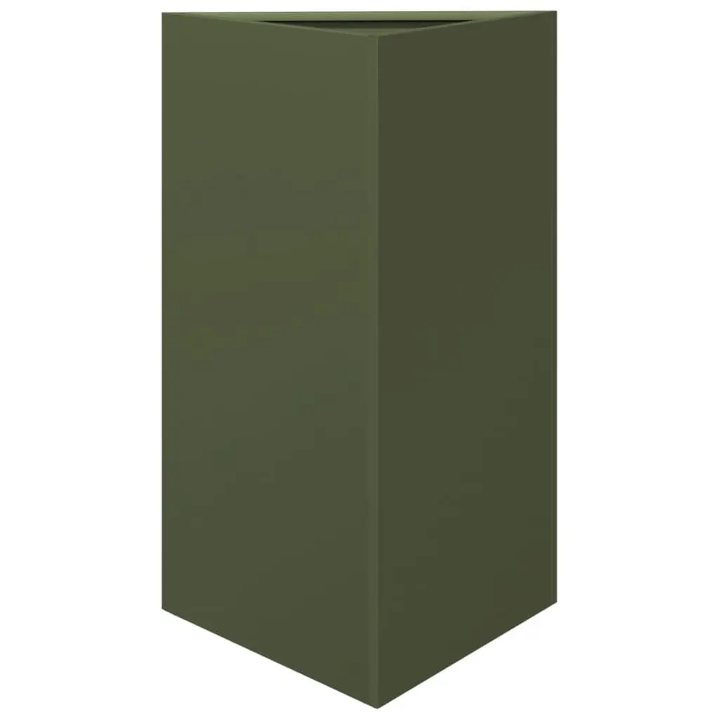 This Olive Green Triangular Garden Planters Set is a modern solution for plant lovers wanting to show off their greenery in a stylish way. Made from tough steel, they add a contemporary vibe to any balcony, patio, or garden and are built to last—perfect for indoor and outdoor use. Space-Saving Design: The triangular shape helps use space better, great for smaller areas like balconies or tight patios. You can set up these planters in less space while still having a lovely garden display.Durability: Made from top-notch metal steel, these planters resist rust and UV rays, perfect for all kinds of weather. Their sturdy build ensures they'll serve you well in any season without losing quality.Versatile Usage: Designed for both indoors and outdoors, these planters are a stylish addition to your home or a nice decorative piece outside. They enhance the vibe whether on a terrace, balcony, or in a garden.Stylish Appearance: The olive green finish not only looks lovely but also adds a touch of class to your plants. The modern look complements any decor while showcasing your favorite flowers, herbs, or decorative plants.Includes Two Planters: The set comes with two planters, giving you options in arranging greenery. This pair allows for a cohesive style while letting you choose how to display your plants.