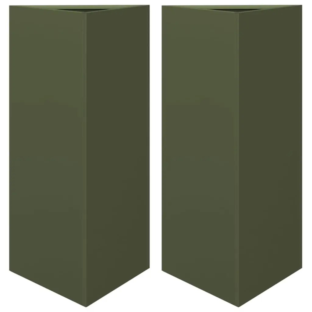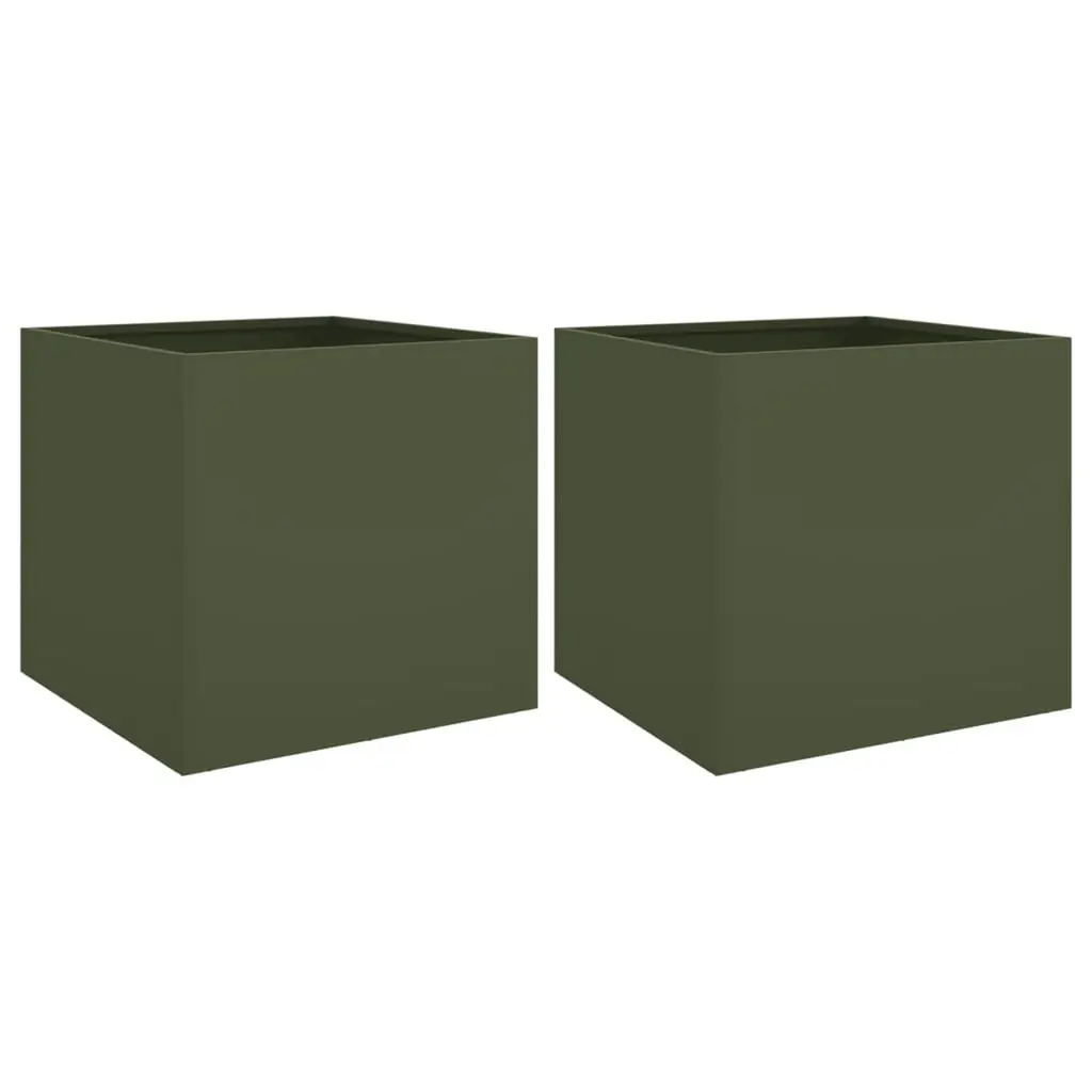 Vidaxl Garden Planter Set Of 2 Olive Green Steel Large Durable