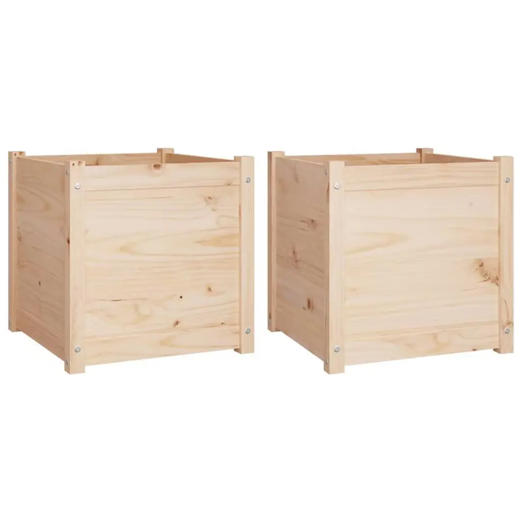 This set of two sturdy garden planters is just right for outdoors, letting you grow a variety of plants, flowers, or herbs in a nice rustic style. Built from solid pinewood, these planters not only blend right into your balcony or terrace but also solve all your gardening needs with both function and charm. Rustic Design: The natural finish of these garden planters shows off their solid wood build, making your outdoor area visually appealing while providing a lovely home for your plants.Ample Space: Each planter measures 23.6 in. cubed, which is just the right size for growing various plants or flowers, ensuring they have the room they need to thrive.Durable Materials: Built from untreated solid pinewood, these planters withstand the weather and stay strong, making them a top pick for garden lovers.Easy to Maintain: With simple care tips, keeping these planters clean and working well is a cinch—just brush off any dirt and wash with warm water.Versatile Use: Perfect for balconies, patios, or gardens, these planters serve all gardening styles, helping you create your perfect outdoor haven.