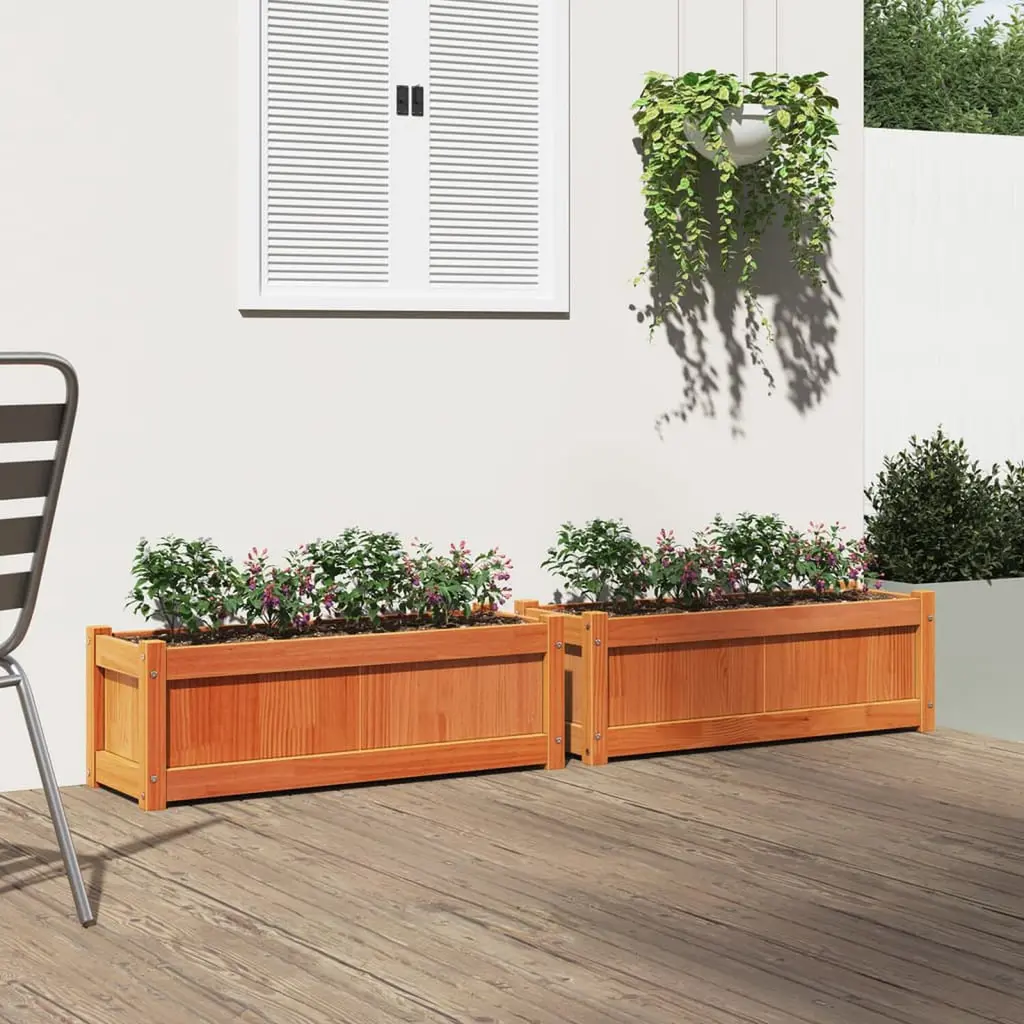 Vidaxl Garden Planter Set Of 2 Wax Brown Solid Pine Wood Large