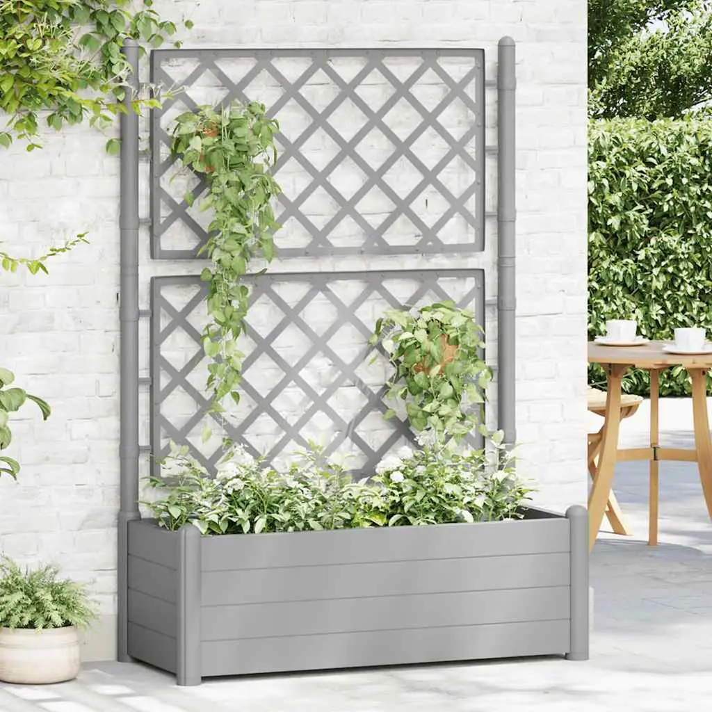 This garden planter with an integrated trellis is all about modern style and function, perfect for those who love gardening both indoors and outdoors. Its sleek rectangular shape and stunning stone grey finish make it stand out, all while providing solid support for climbing plants. It's an eye-catching addition to balconies, patios, or gardens. Modern Design: The planter has a matte finish for a sleek, non-reflective look that fits in anywhere, inside or outside. It boosts the beauty of your plants and stays stylish no matter the setting. Integrated Trellis: With its built-in trellis, this planter supports vines and climbing plants beautifully, encouraging healthy growth. It’s great for creative vertical gardening, making your plant displays even more interesting. Durability: Made from UV-resistant polypropylene, this planter can brave the harsh sun without wearing out, so you can enjoy its vibrant grey color without fretting over fading, perfect for outdoor gardening. Versatile Use: Whether you put it on a balcony, in the garden, or on the patio, this planter fits in everywhere. Its smooth texture and stylish design let you display your favorite plants wherever they thrive. Easy Maintenance: Just wipe it down with a damp cloth, and cover it when the weather’s rough. This ease of upkeep keeps your planter looking fab with minimal hassle.