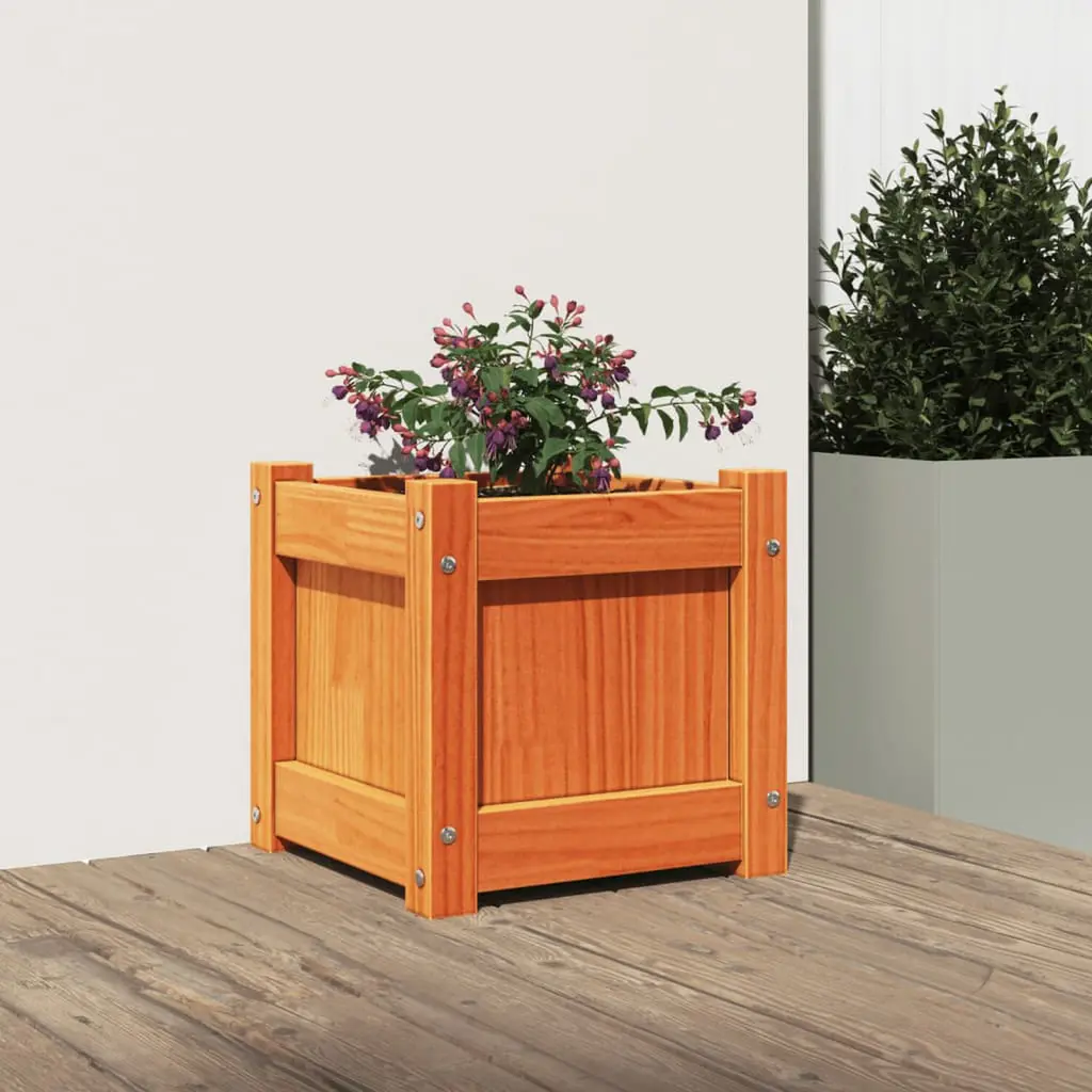 Vidaxl Garden Planter Wax Brown Solid Pine Wood 12.2 X 12.2 X 12.2 In