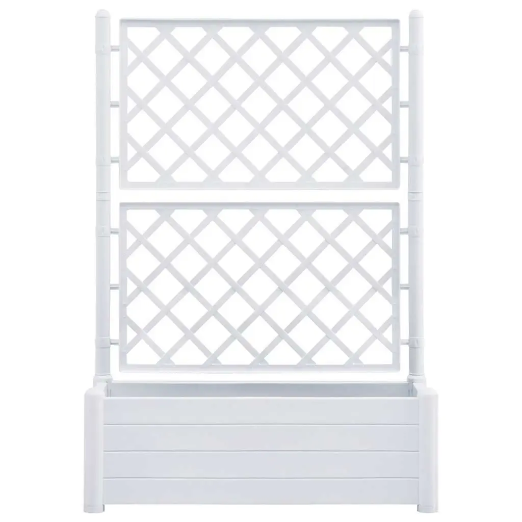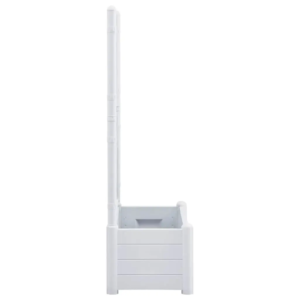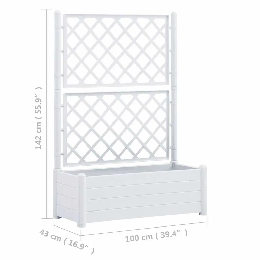 This large garden planter balances looks and practicality, making it a great fit for any balcony or outdoor spot. Its strong trellis gives climbing plants the support they need, while the sleek matte finish gives it a classy, modern vibe that suits any style. Sturdy Trellis Feature: The included trellis is perfect for supporting climbing plants, helping you create a stunning vertical garden while saving space and boosting plant growth. Spacious Dimensions: At 39.4 in. in length, 16.9 in. in width, and 55.9 in. in height, this planter provides plenty of room for numerous plants, making it a great choice for garden fans. Ideal for flowers or even herbs. Durable Materials: Made from UV-resistant polypropylene, this planter stands tough against the elements, ensuring it lasts and looks good in all kinds of weather. Effortless Care: Keeping it clean is easy; just wipe with a damp cloth to maintain its fresh appearance. Avoid exposing it to harsh weather, making it a great fit for sheltered outdoor spots. Stylish Design: The sleek white finish and smooth texture deliver a classy look that fits perfectly with modern garden aesthetics, adding a touch of style to your outdoor space.