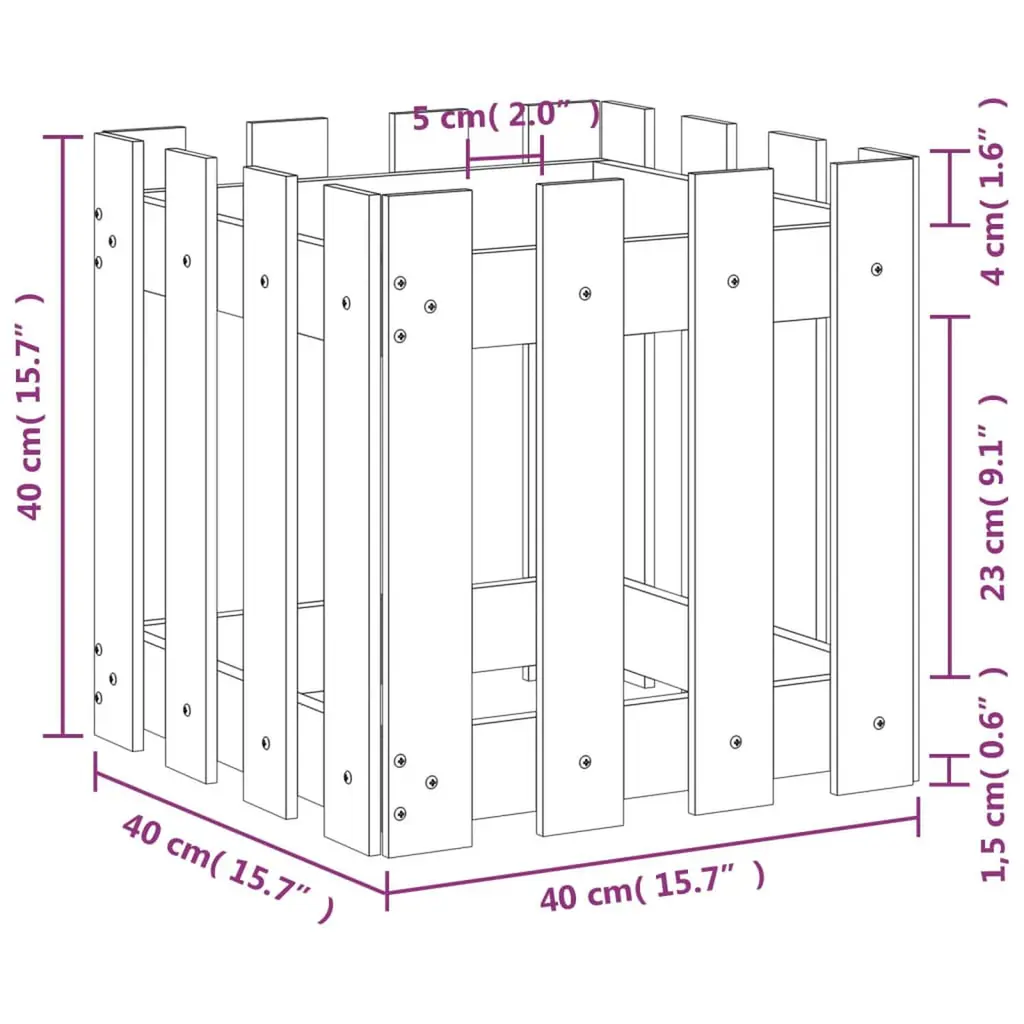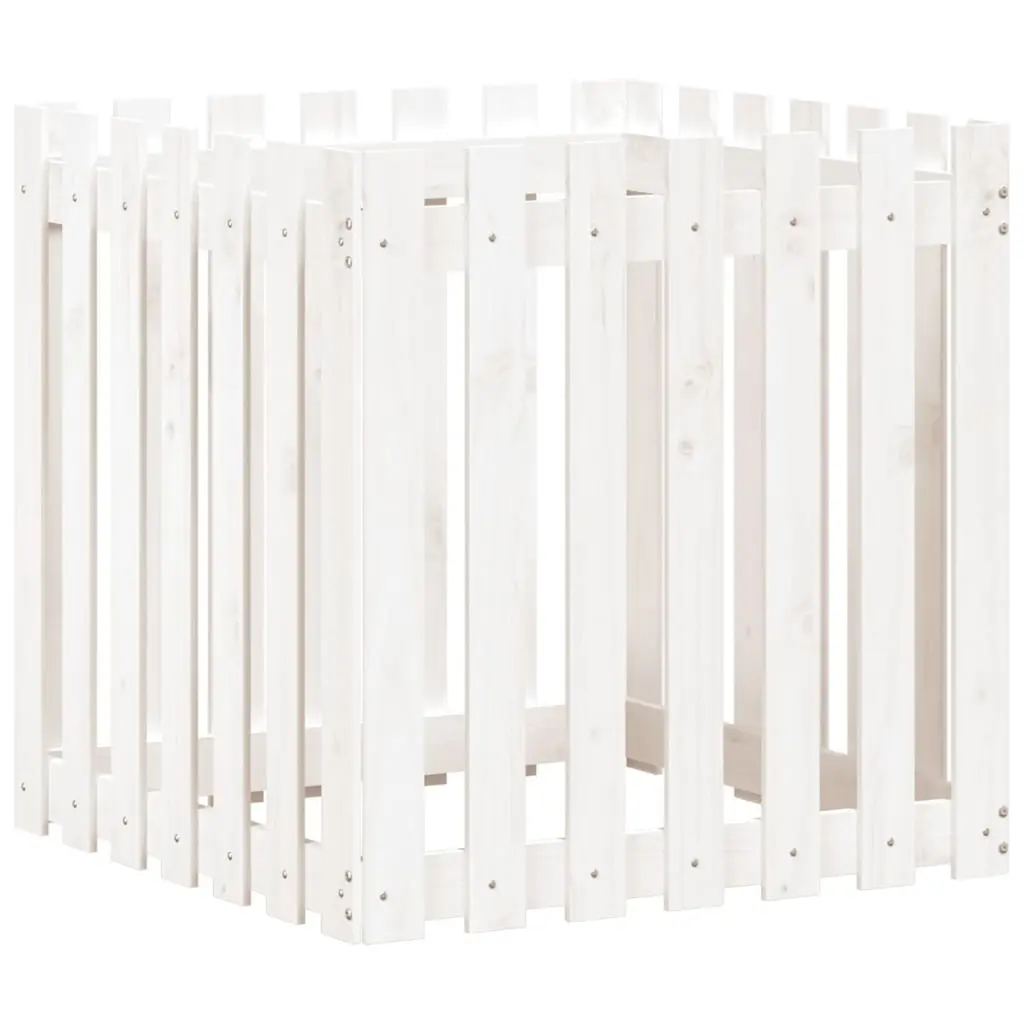 This rustic wooden planter is 15.7 x 15.7 x 15.7 in and made from solid pine wood with a lovely white finish. It works great anywhere, whether on a balcony, terrace, or garden, allowing you to grow flowers or cover plastic plant pots. It brings a bit of nature closer to your home and freshens up your outdoor space with its sweet simplicity. Decorative Inlays: The planter features nice decorative bits that give it style and turn any plant display into something special. Simplicity in Design: With its simple design, it fits various styles, perfect for rustic or modern gardens. Durable Construction: Made from solid pine wood, it’s built to withstand the weather and keep your plants healthy. Easy Maintenance: The painted finish helps protect the wood, making it easy to clean — perfect for stress-free gardening. Functional Size: With 15.7 in on each side, it has plenty of room for planting while being compact enough for any space.