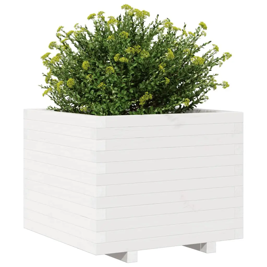Vidaxl Garden Planter White Solid Pine Wood 23.6x23.6 In Durable
