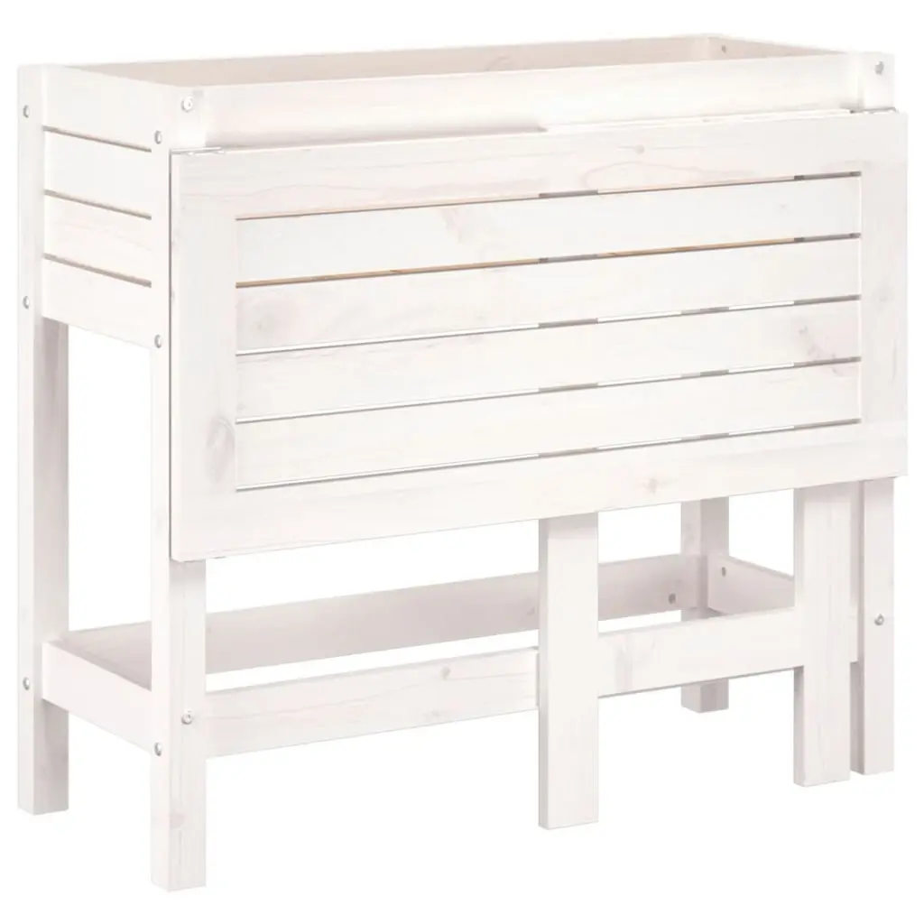 Vidaxl Garden Planter White Solid Pine Wood Medium Foldable