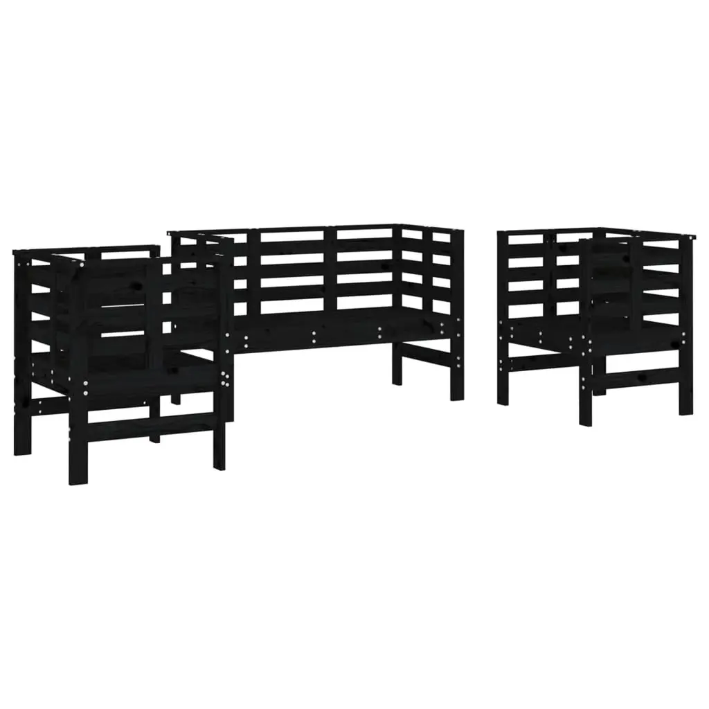 Vidaxl Garden Planters Set, Solid Pinewood Construction, Black, 27.6"x27.6"x27.6", Weather-resistant, Ideal For Outdoor Use, Requires Assembly