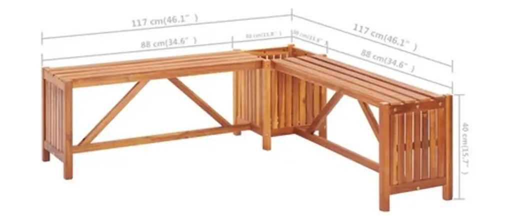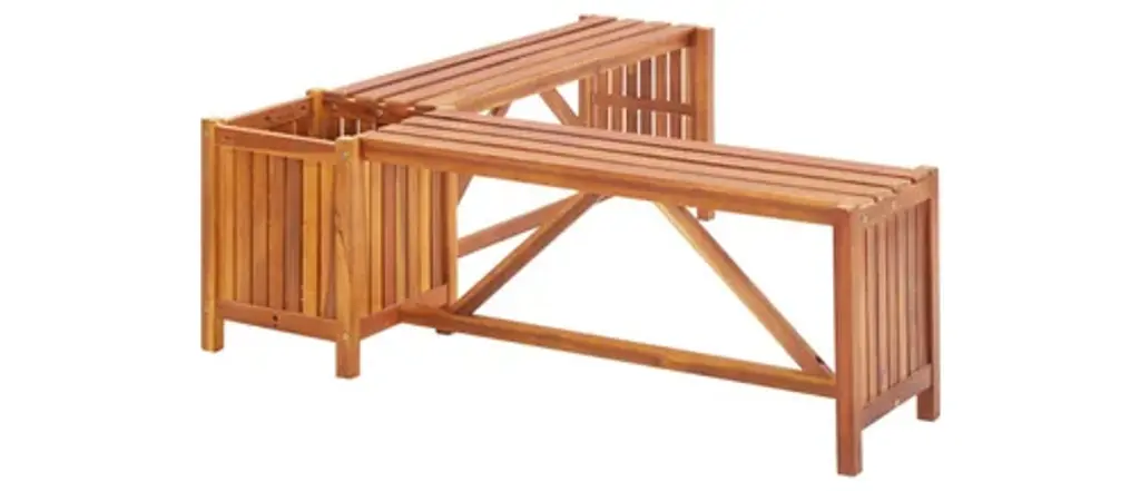 Add a welcoming touch to any patio, deck or entertaining area with our solid wood patio bench! Finished with a light oil coating, the planter bench is made of durable acacia hardwood, which is characterized by excellent weather-resistance. Accordingly, our garden seat is extremely suitable for outdoor use. The planter box serves as a great place to grow a variety of flowers or plants, which will make a great addition to your garden. Take a load off on this lovely wooden bench with the planter box!Material: Solid acacia wood with an oil finishTotal dimensions: 46" x 46" x 15.7" (W x D x H)Seat width: 34.6"Seat depth: 9.4"Planter box dimensions: 11.8" x 11.8" x 15.7" (W x D x H)Assembly required: Yes