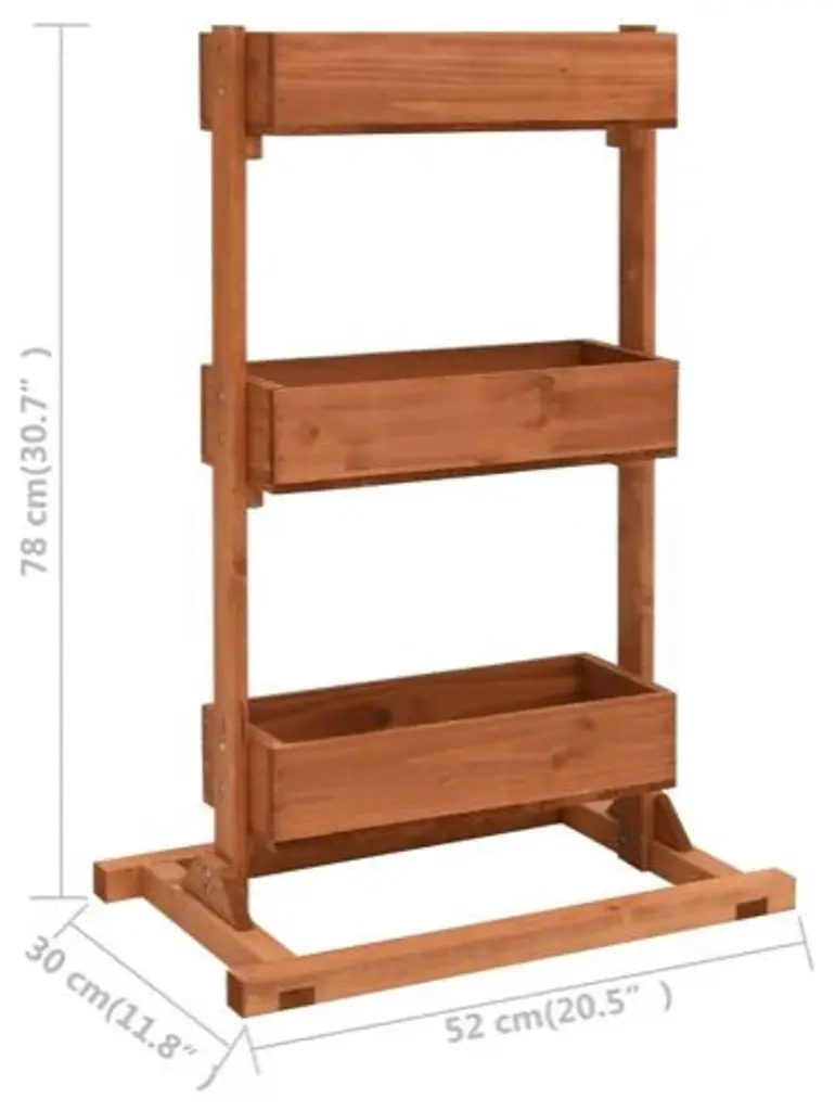 vidaXL Planter 20.5"x11.8"x30.7" FirwoodThis wooden planter is perfect for planting and displaying your potted plants at home, garden, patio or terrace. The plant stand is handmade out from solid firwood, making it stable and durable enough to be used outdoors year-round. The plant holder features 3 shelves and provides plenty of room to keep your plants in order. Display your favorite flower or plants with this plant rack!Material: Firwood with water based paintDimensions: 20.5" x 11.8" x 30.7" (W x D x H)Loading capacity (each shelf): 15.4 lbAssembly required: YesColor: Brown