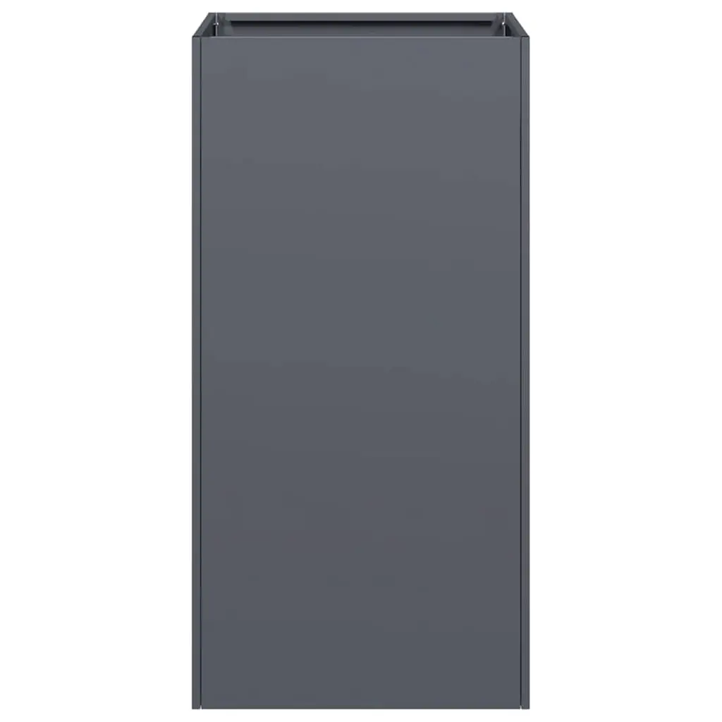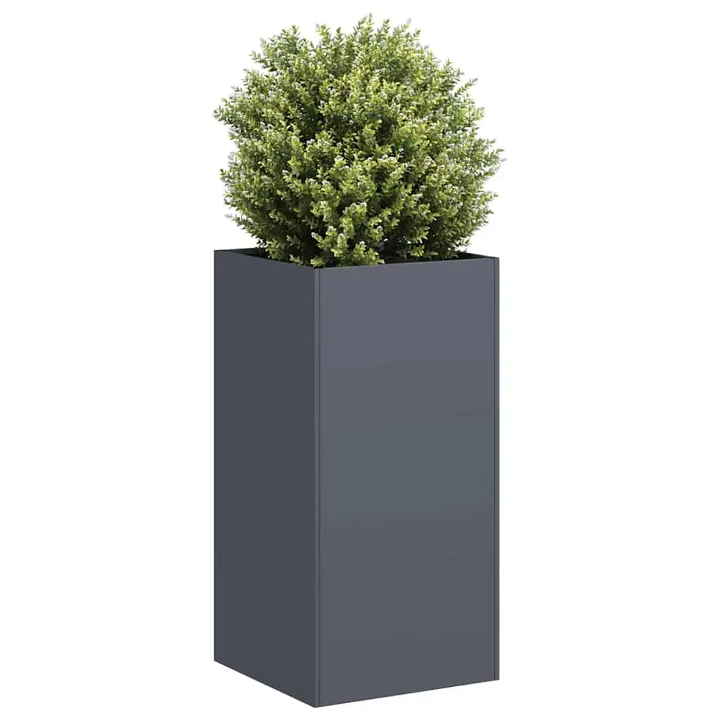 This large anthracite steel planter neatly combines style and function, making it a great addition to any outdoor space. With smooth lines and a matte finish, it looks awesome while giving plants loads of room to grow. Durable Material: Made from cold-rolled steel, this planter is strong and stable, built to withstand the elements for outdoor use.Modern Aesthetic: The anthracite color and matte finish give a chic vibe that fits perfectly into any outdoor scene.Large Capacity: At 15.7x15.7x31.5 in, it can hold many types of plants, offering plenty of soil capacity.Easy to Clean: Keeping it looking good is a breeze; just a rinse with warm water is all you need.Weather Resistant: No worries about fading or damage, as it's UV resistant for all weather conditions.