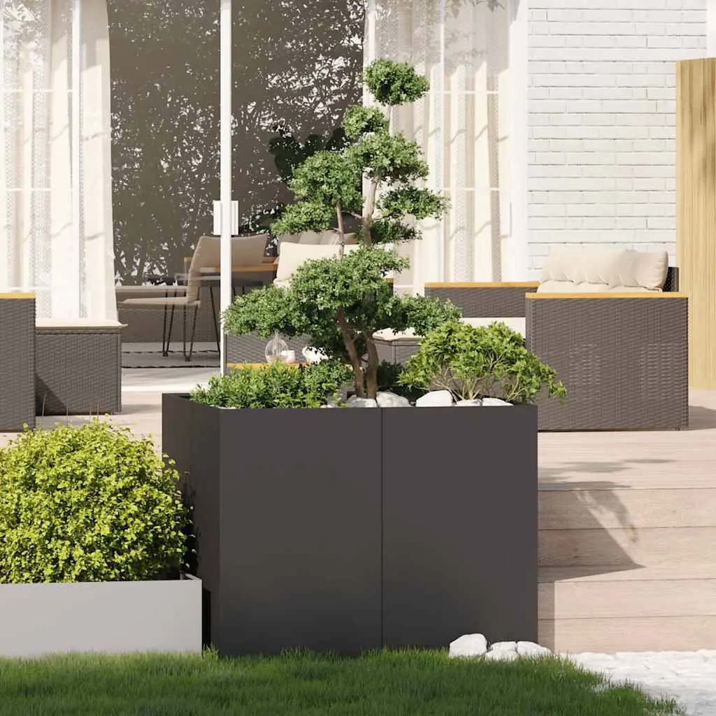 Vidaxl Planter Black Cold-Rolled Steel Large Durable Planter Square