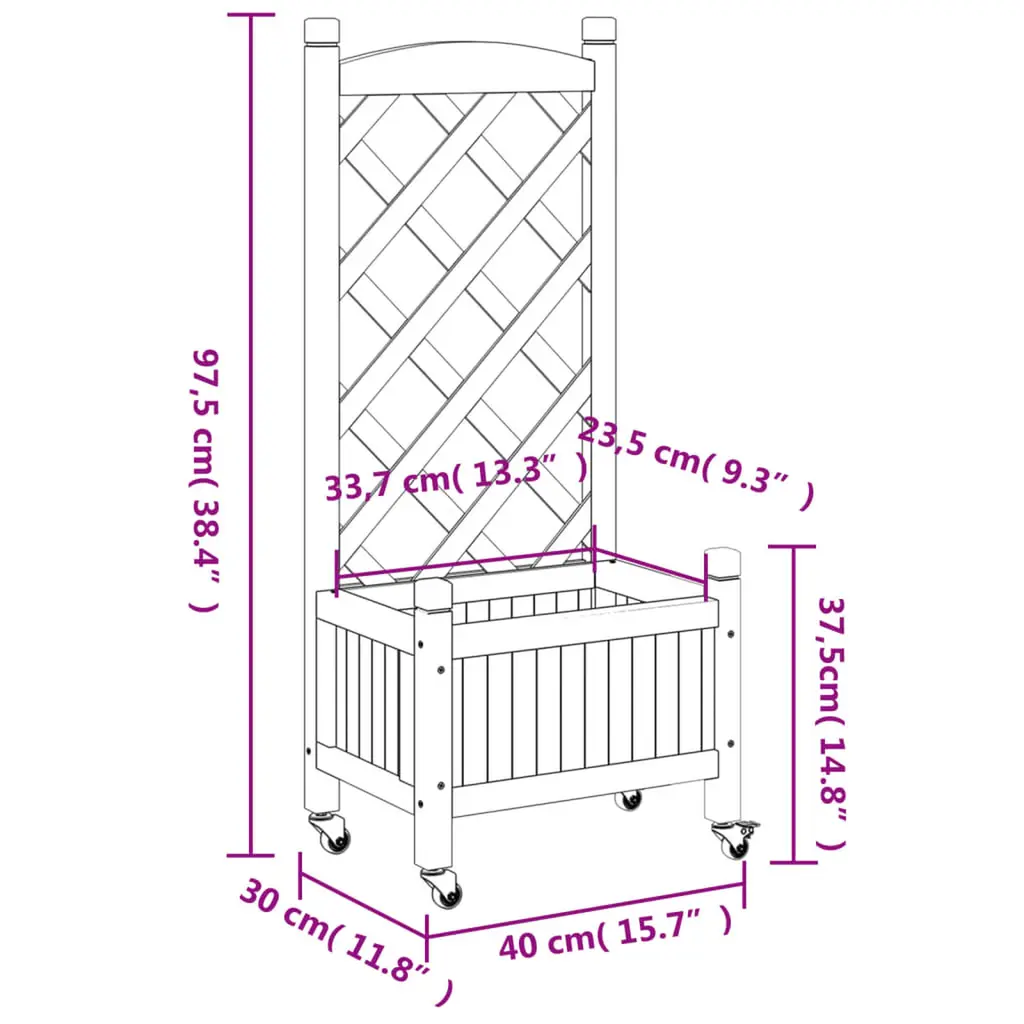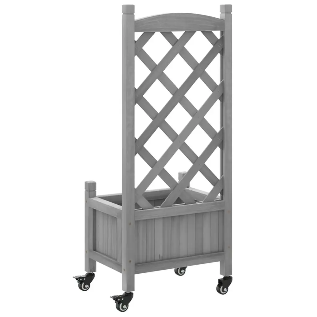 This Grey Wooden Planter with Trellis and Wheels is a classy way to grow climbing plants while sprucing up your indoor or outdoor space. Its modern look blends practicality with style, making it a must-have for any keen gardener, brightening up balconies, patios, or gardens with its lovely charm. Mobility: The planter's four sturdy wheels let you roll it about easily, so you can change up your flower arrangements or shift it for seasonal changes. Design: The integrated trellis offers great support for climbing plants, creating a lush vertical garden that helps your plants flourish. Durability: Built from solid fir wood and iron, this planter is tough enough to handle the weather, keeping it reliable indoors or out. Versatile Use: Perfect for balconies, gardens, or patios, this planter is not just stylish but also a chic way to grow your climbing veggies and herbs. Easy Care: Maintenance is a breeze; just keep it dry when not in use to help it last longer. Focus on enjoying your gardening rather than worrying about upkeep.