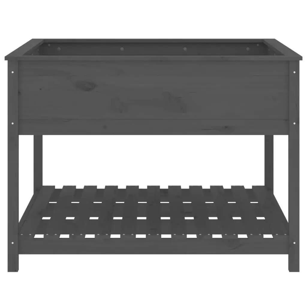 This Large Grey Planter with Shelf is designed to enhance any indoor or outdoor space with its rustic charm and practicality. Made from solid pine wood, it has a smooth finish that’s not just good-looking but tough enough to handle the elements while giving you plenty of space for all your planting needs. Quality Materials: Made from solid pine wood, combining sturdiness with style. This wood is known for its durability and natural beauty, great for both outdoor and indoor settings.Functional Design: The shelf adds extra storage, perfect for holding gardening tools or decor, making this planter more than just a planting spot—it’s a multi-purpose piece of furniture.Ample Planting Space: With dimensions of 43.9 in by 43.9 in and a height of 31.9 in, this planter provides generous room for all your plants, allowing you to create your own garden.Visual Appeal: The grey finish gives it a modern yet rustic flair, ensuring it fits in smoothly with various indoor or outdoor designs, making it a great addition to patios or living rooms.Versatile Usage: Ideal for balconies, patios, or living rooms, this planter is perfect for anyone wanting to bring greenery into their living space.