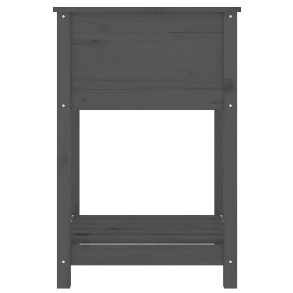 This Grey Solid Pine Wood Planter is a lovely and practical addition to your garden toolkit, built to handle a range of plants like flowers, herbs, and veggies. Its rustic charm fits in nicely with any indoor or outdoor decor, making your balcony, garden, or living room feel warm and welcoming. Ample Planting Space: The planter offers plenty of room for a variety of plants, perfect for vegetables, herbs, or pretty flowers. Its large area helps plants grow better and bloom nicely.Durability: Made from solid pine wood, this planter is built to last, perfect for keen gardeners. The painted finish adds an extra layer of protection, keeping it looking good for years.Versatile Use: This planter can be used indoors or outdoors, letting you create lovely spaces on patios or indoors. Its smart design fits any setting, whether you want a rustic centerpiece inside or a bright display outside.Stylish Storage: With a handy shelf, you can keep gardening tools or decorative items close by, ensuring your space stays tidy and looks nice. This multi-use feature makes gardening a breeze.Care Instructions: Keeping it clean is simple; just use a damp cloth. Make sure the wood stays dry to keep the finish intact and prolong the planter's life.